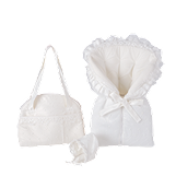 Set: Hanging canopy + Nest with flounce + pillows – white