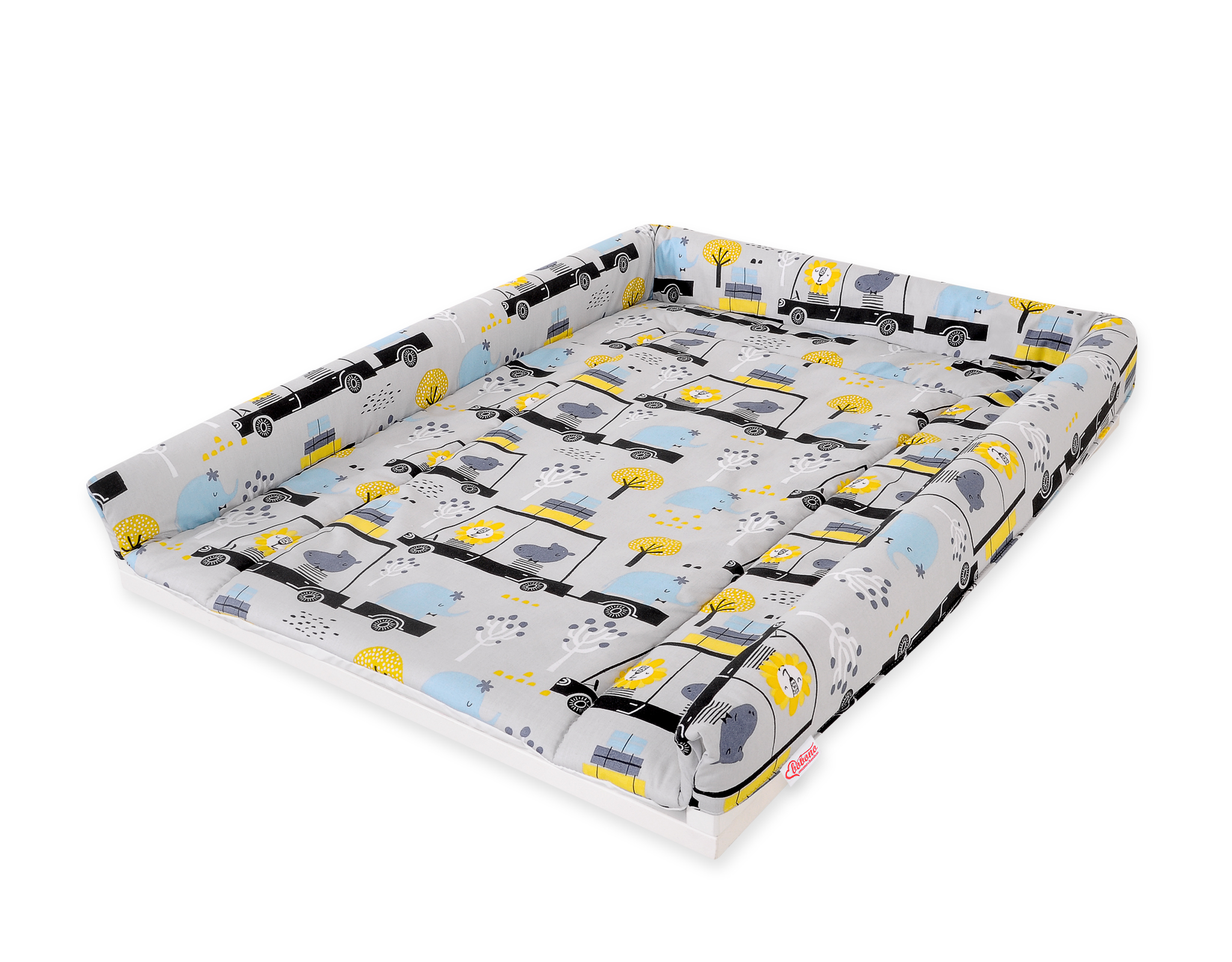 It allows for easy and comfortable changing of the baby, changing diapers, before and after bathing. The three-layer construction of the changing table ensures the highest comfort and convenience: nice soft cotton on top of the changing table (certified by Ökotex), inside there is a layer of soft fluffy unwoven fabric (anti-allergic, certified by Ökotex), from the bottom there is a white soft oilcloth that protects the chest or extension against getting wet. The whole set is heavily stitched on the edges and in the middle, thanks to which it will not lose its shape even after many washings. The whole thing is heavily stitched around the edges and through the middle, so it won’t lose its shape even after many washings.