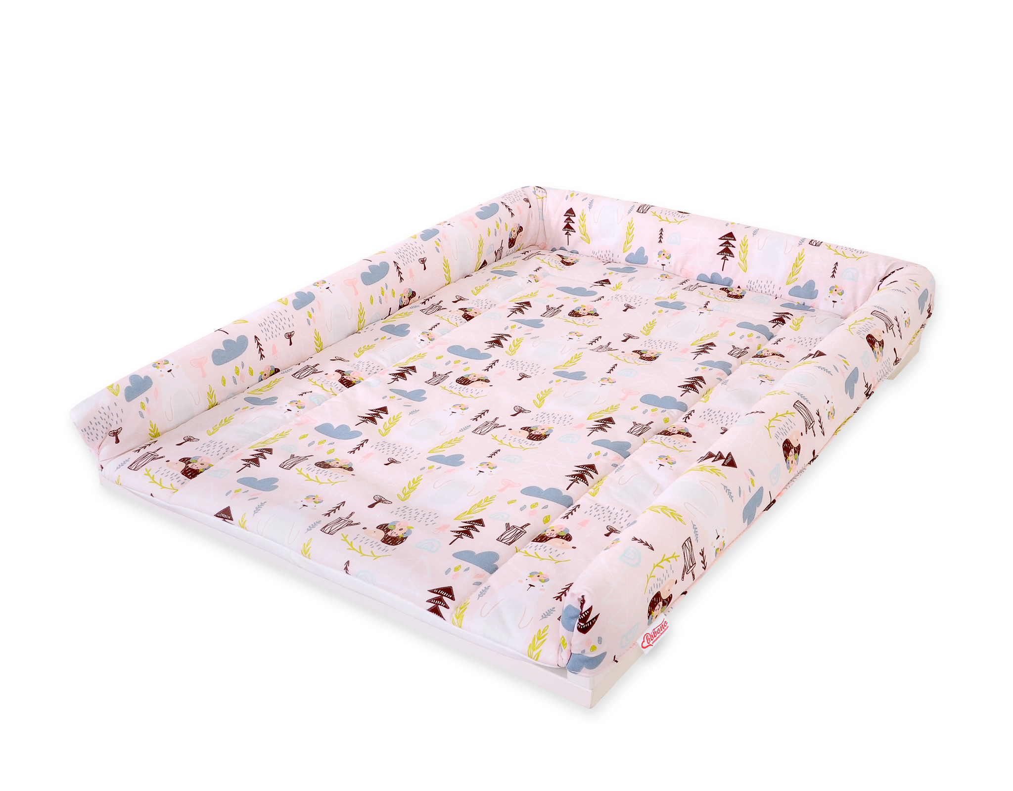 It allows for easy and comfortable changing of the baby, changing diapers, before and after bathing. The three-layer construction of the changing table ensures the highest comfort and convenience: nice soft cotton on top of the changing table (certified by Ökotex), inside there is a layer of soft fluffy unwoven fabric (anti-allergic, certified by Ökotex), from the bottom there is a white soft oilcloth that protects the chest or extension against getting wet. The whole set is heavily stitched on the edges and in the middle, thanks to which it will not lose its shape even after many washings. The whole thing is heavily stitched around the edges and through the middle, so it won’t lose its shape even after many washings.