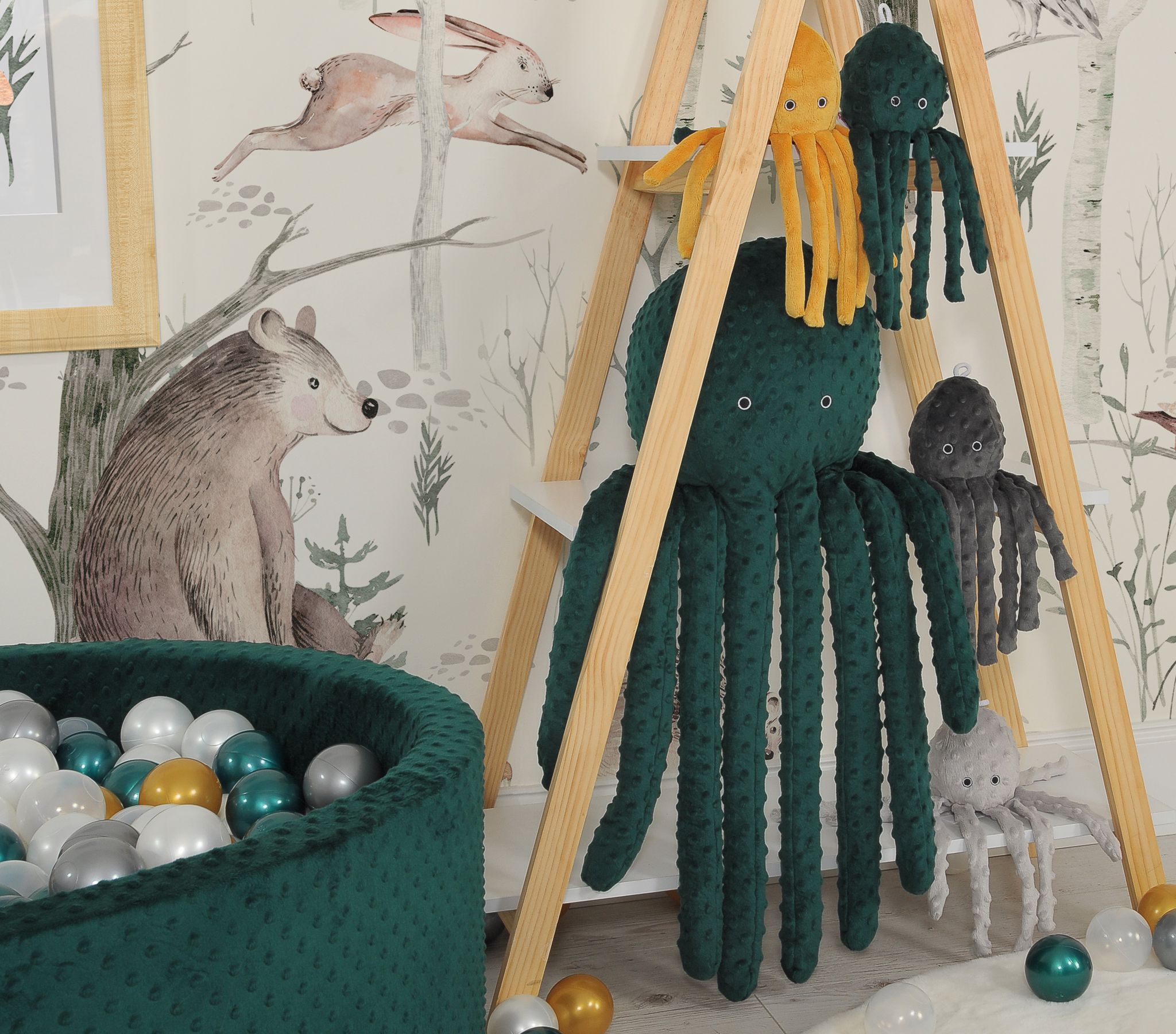 Cuddly octopus big – bottle green – polka dot minky