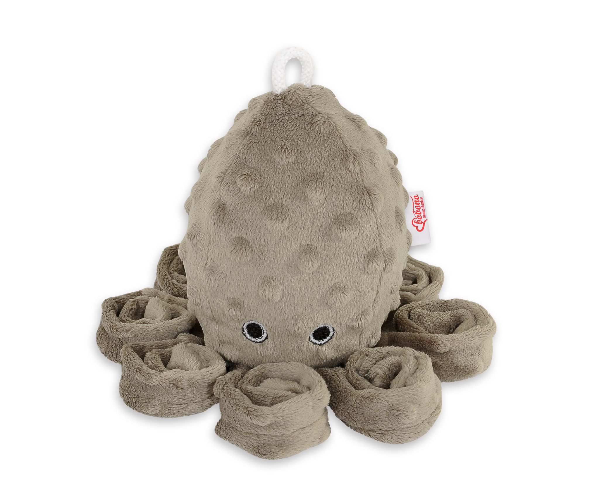 Funny cuddly octopus is perfect for sleeping and cuddling for each baby. Arms of ostopus are comfortable to hold by tiny baby hands. The octopus is perfect and safe for babies from firsts moments of life. With the gentle rattle noise it draws the attention of the child on itself. Made of soft touch, fluffy and delicate minky fleece. The filling inside the pillow it is Eco Fillball- atested Silicone Balls – “artificial fluff” for pillows- filling ensures proper settlement of the baby and air circulation.