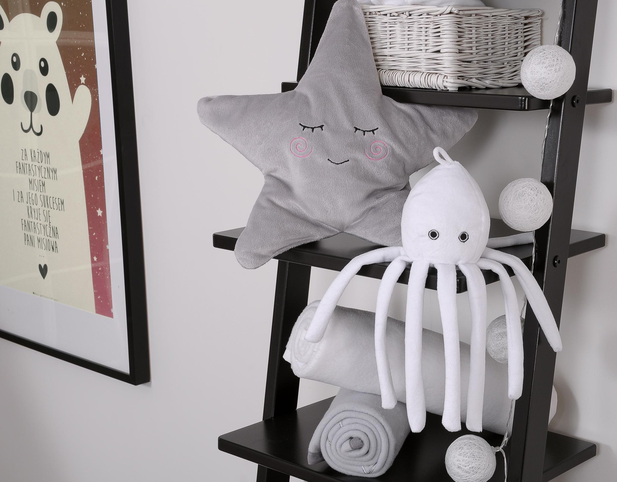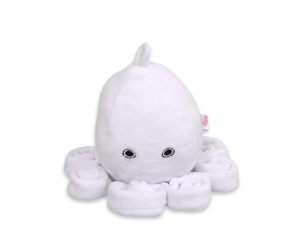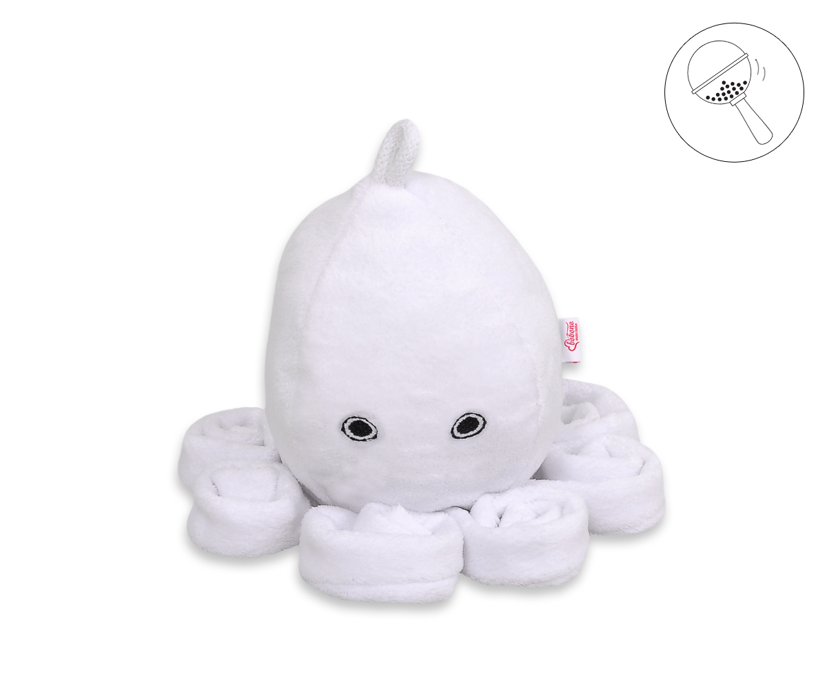 Funny cuddly octopus is perfect for sleeping and cuddling for each baby. Arms of ostopus are comfortable to hold by tiny baby hands. The octopus is perfect and safe for babies from firsts moments of life. With the gentle rattle noise it draws the attention of the child on itself. Made of soft touch, fluffy and delicate minky fleece. The filling inside the pillow it is Eco Fillball- atested Silicone Balls – “artificial fluff” for pillows- filling ensures proper settlement of the baby and air circulation.
