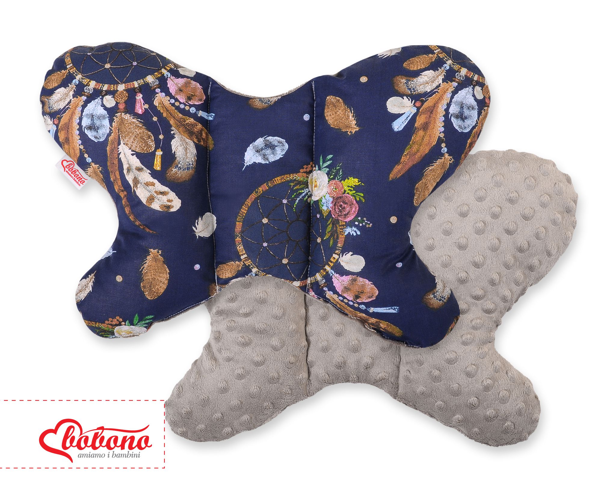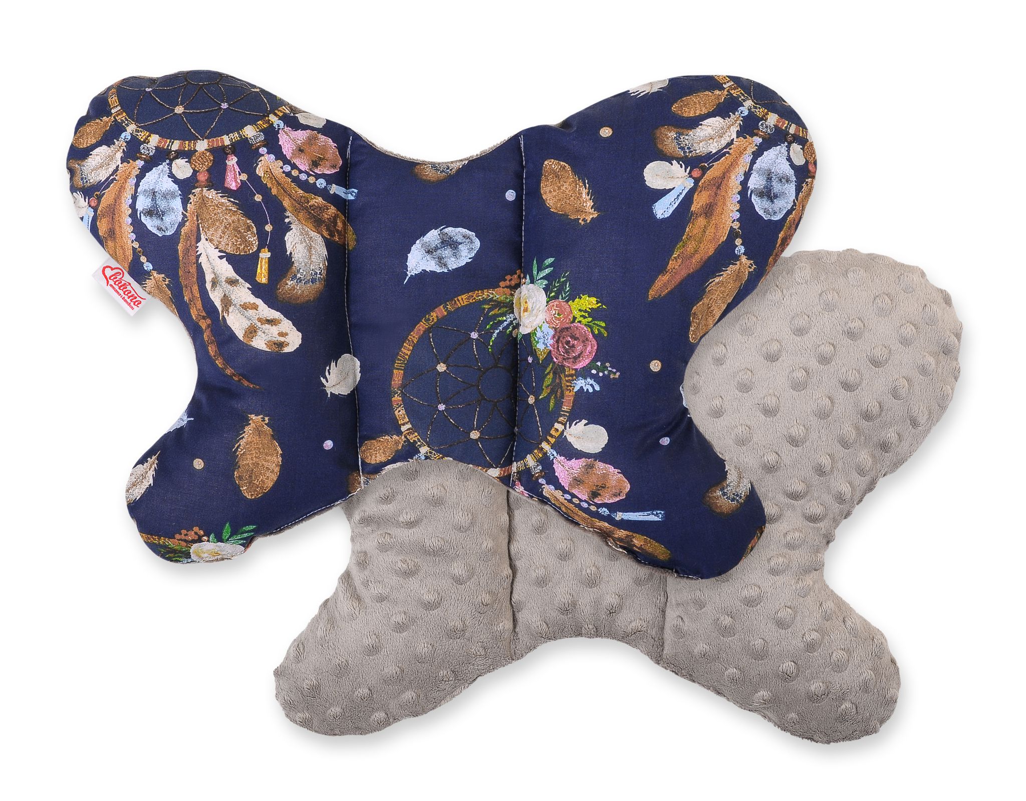 Double-sided anti shock cushion “BUTTERFLY” – dream catchers dark blue/gray brown