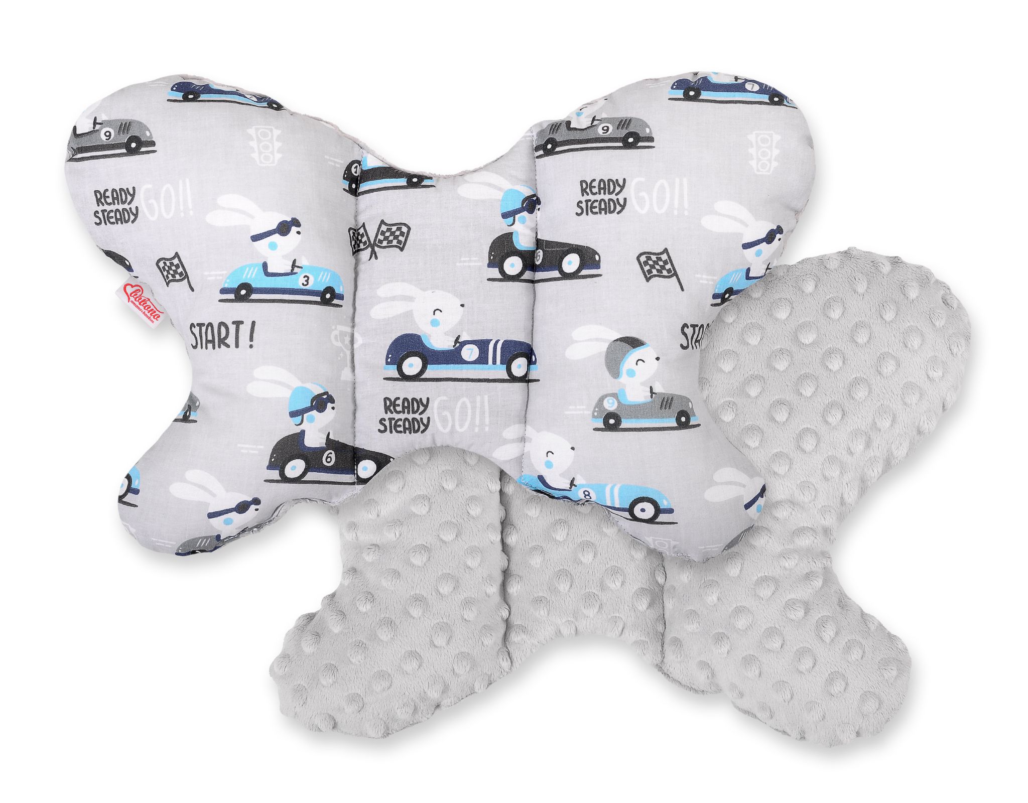 Double-sided anti shock cushion “BUTTERFLY” – gray rabbits/gray