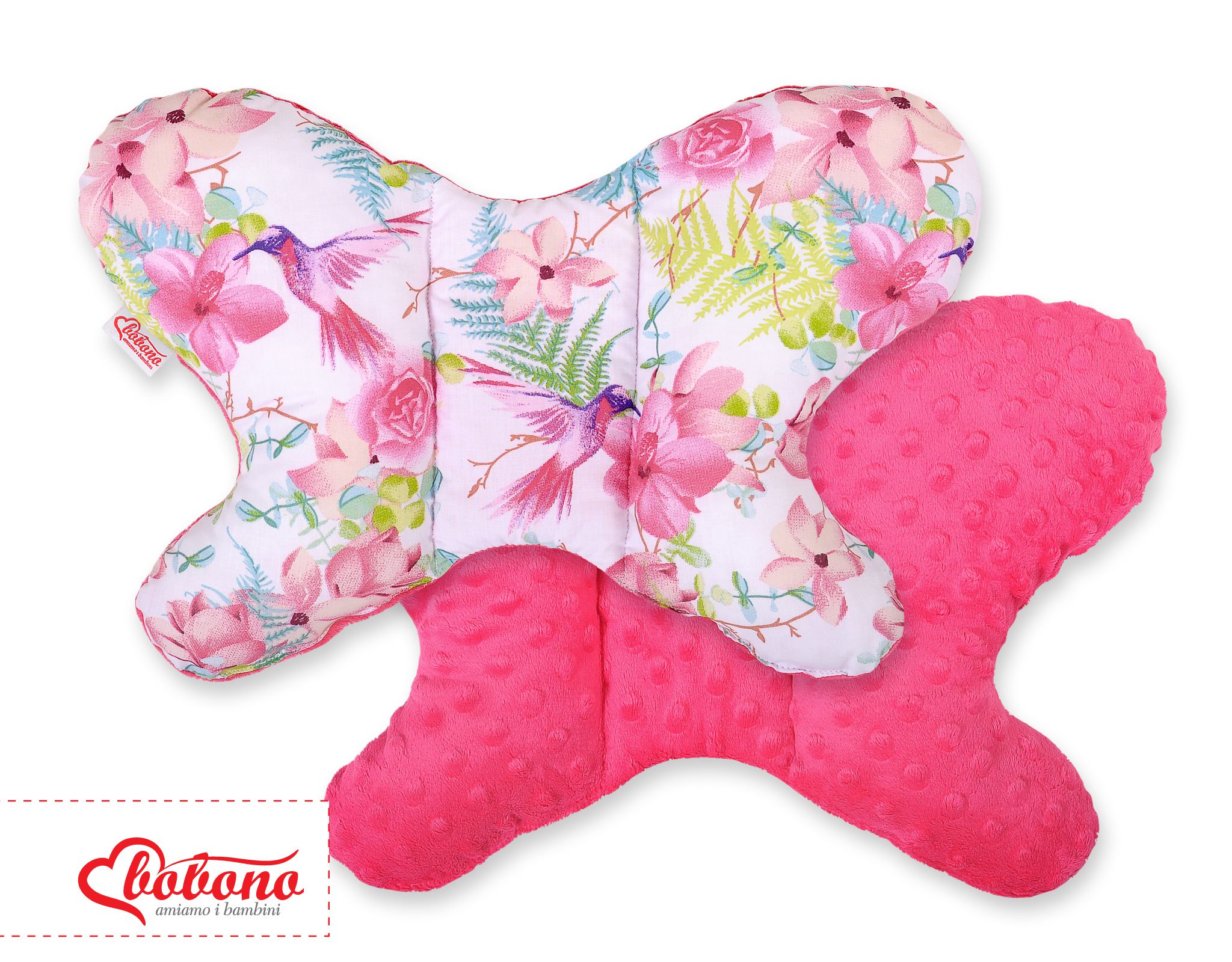 Double-sided anti shock cushion “BUTTERFLY” – hummingbirds in flowers/rosa
