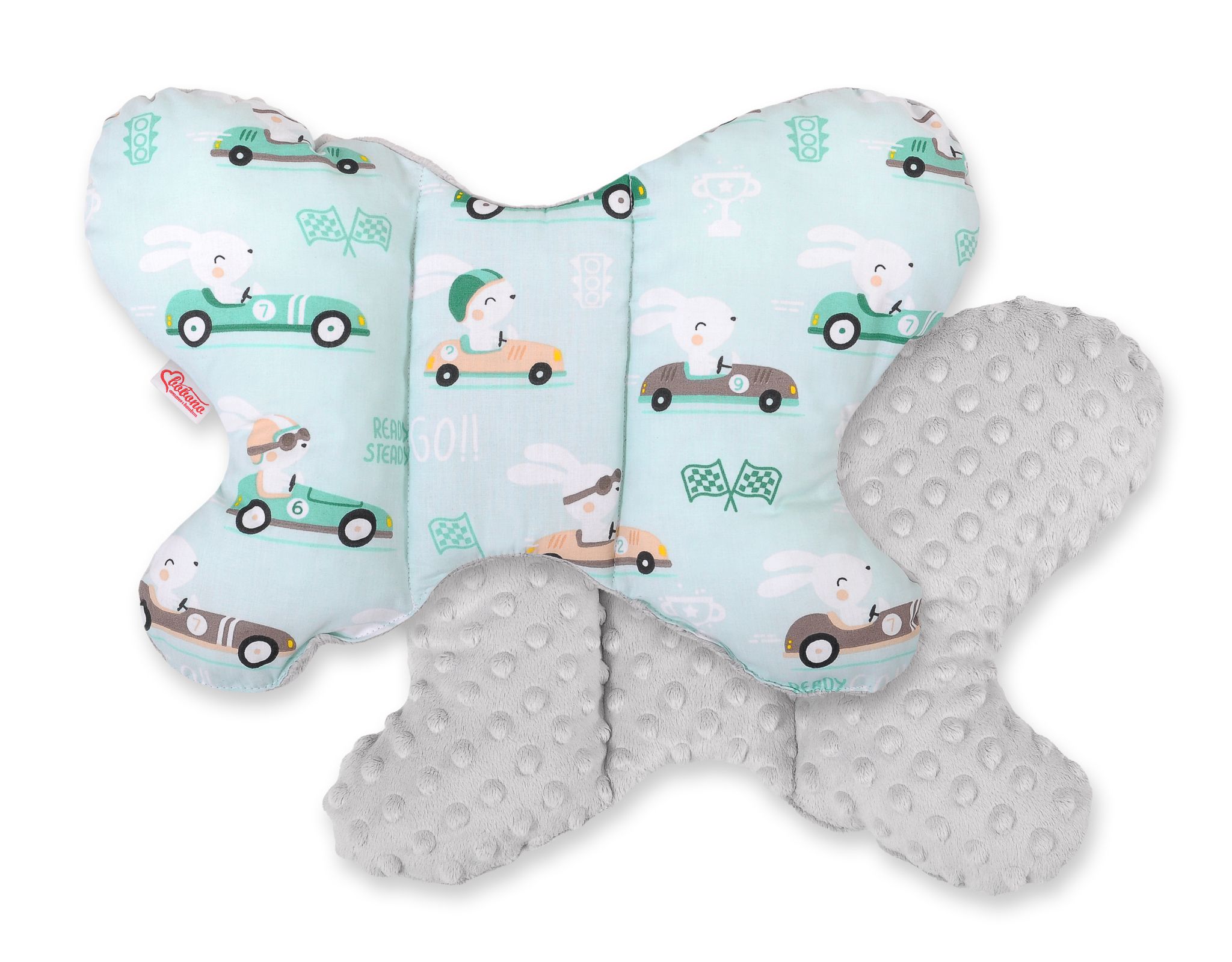 Double-sided anti shock cushion “BUTTERFLY” – rabbits mint/gray