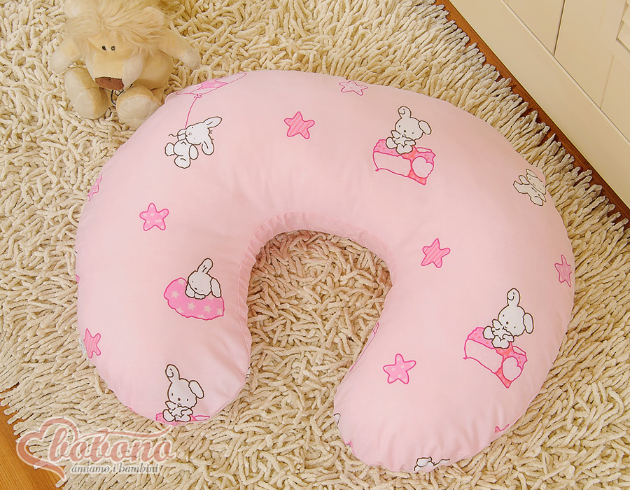 Breastfeeding Pillow Nursing Croissant Pillow, removable, Hands-Free Feeding- bear pink