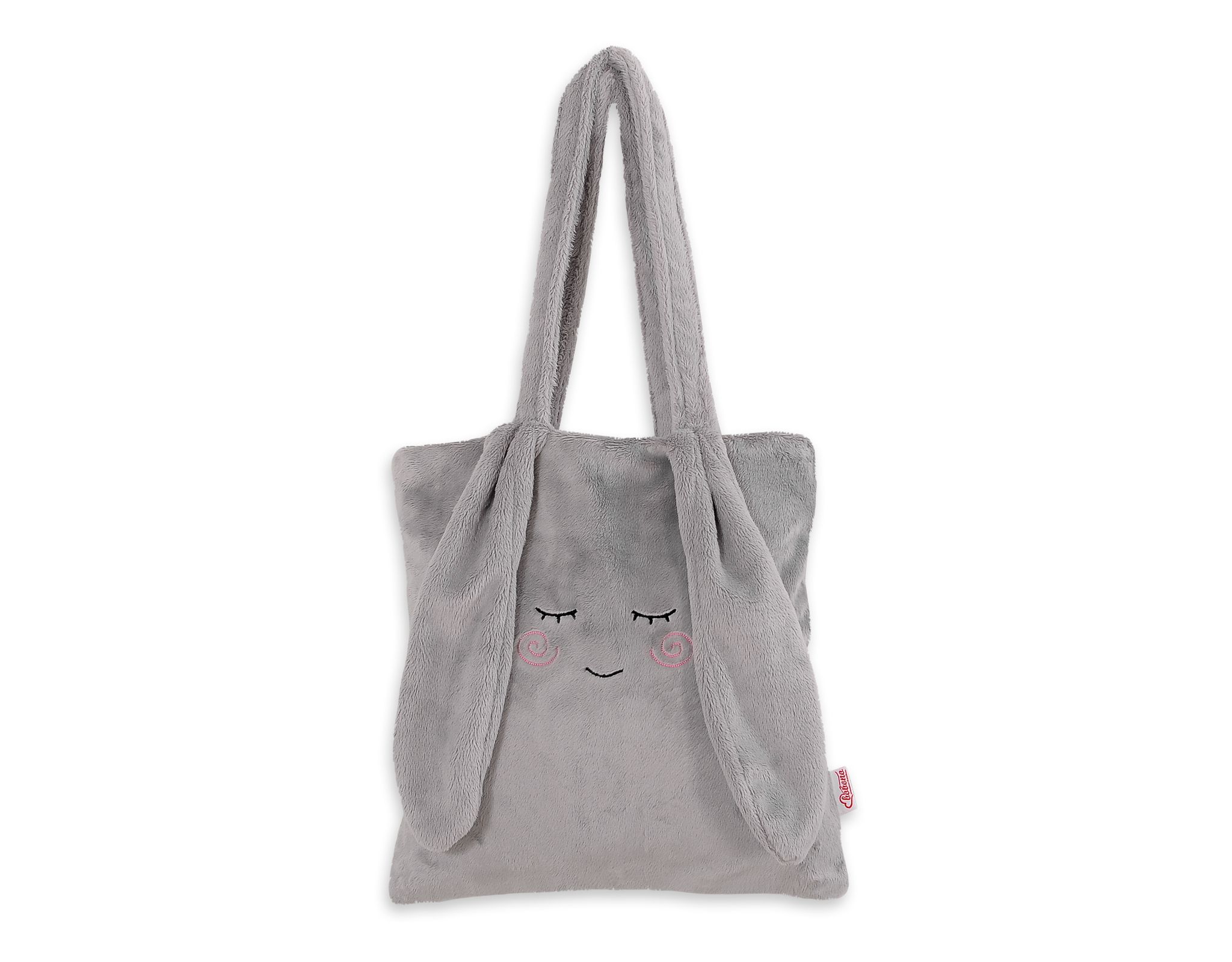 Children’s shoulder bag Hare with embroidery and long bunny ears. Made of soft minky, cotton lining.