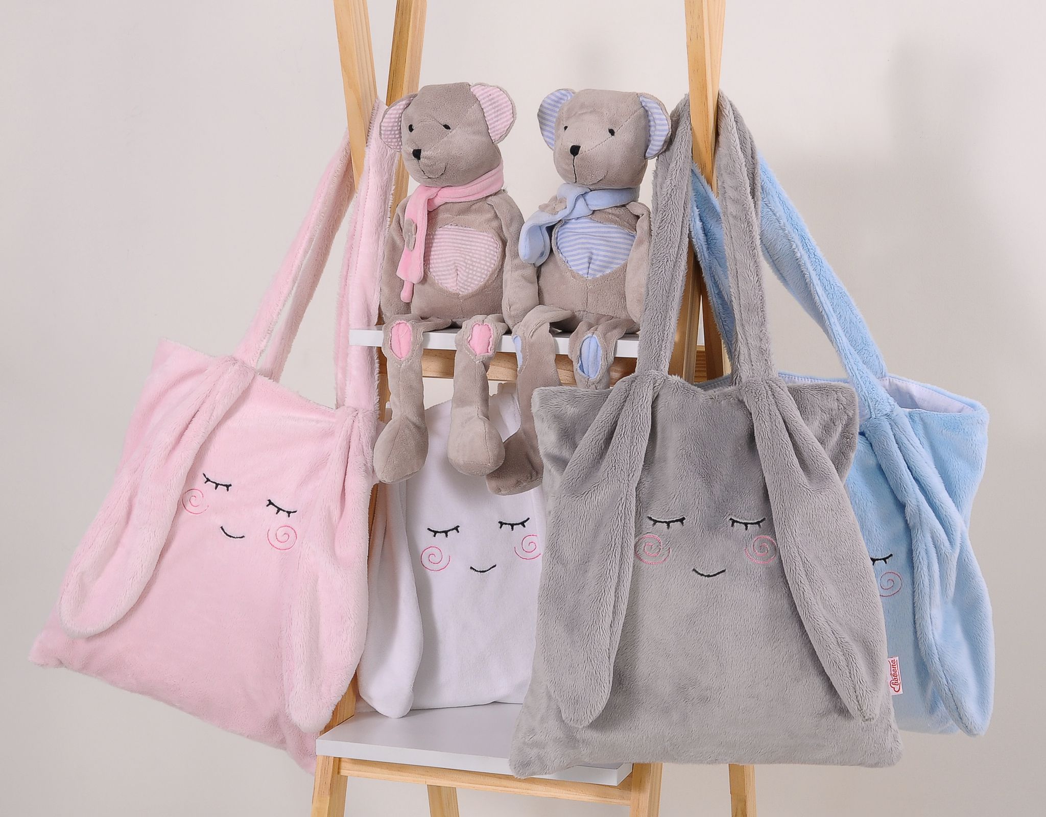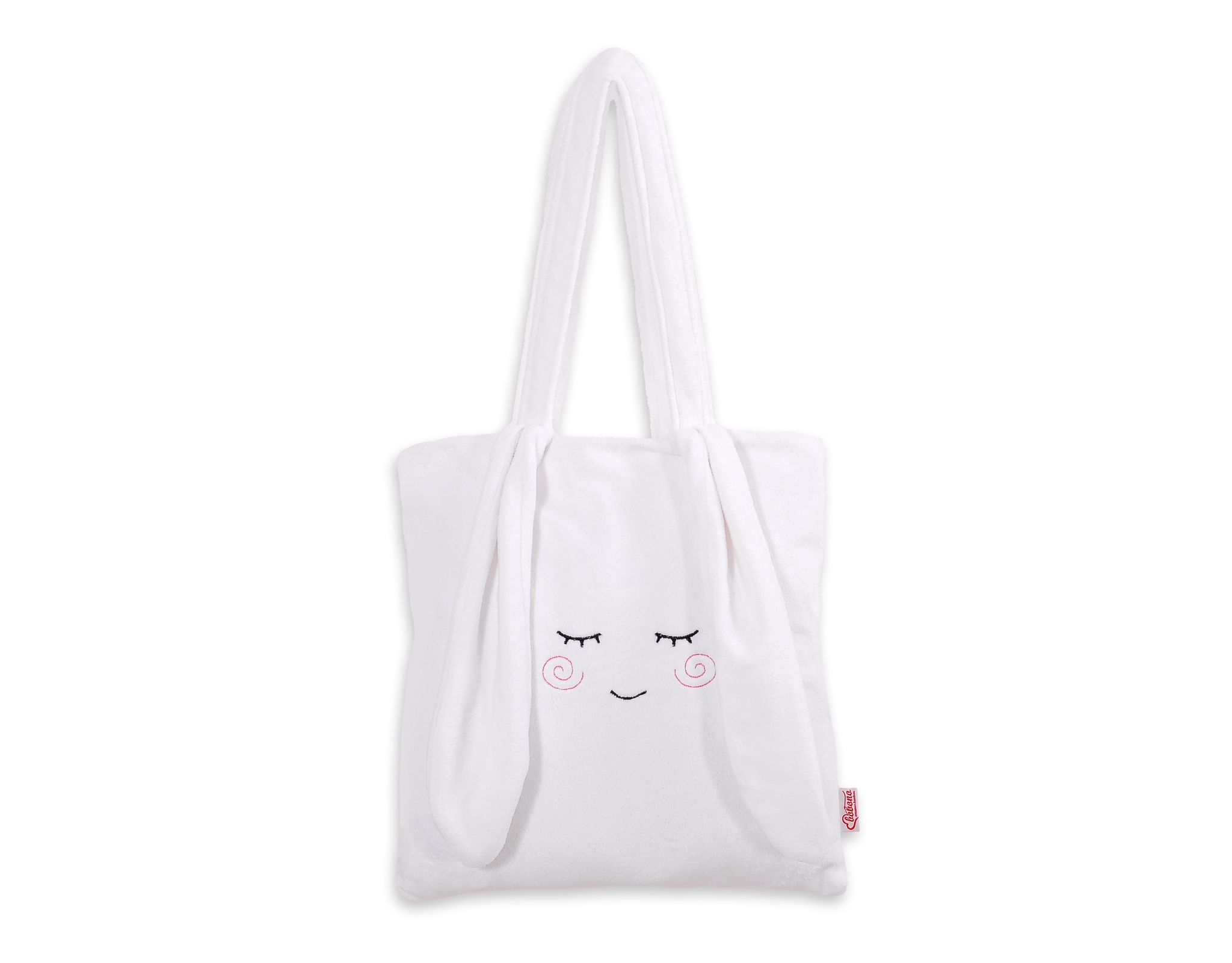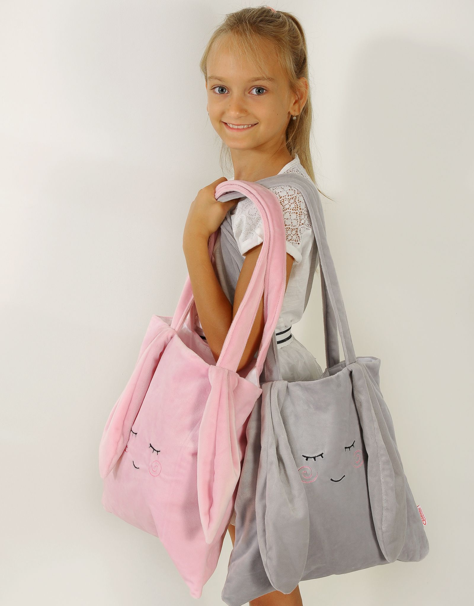 Children’s shoulder bag Hare with embroidery and long bunny ears. Made of soft minky, cotton lining.