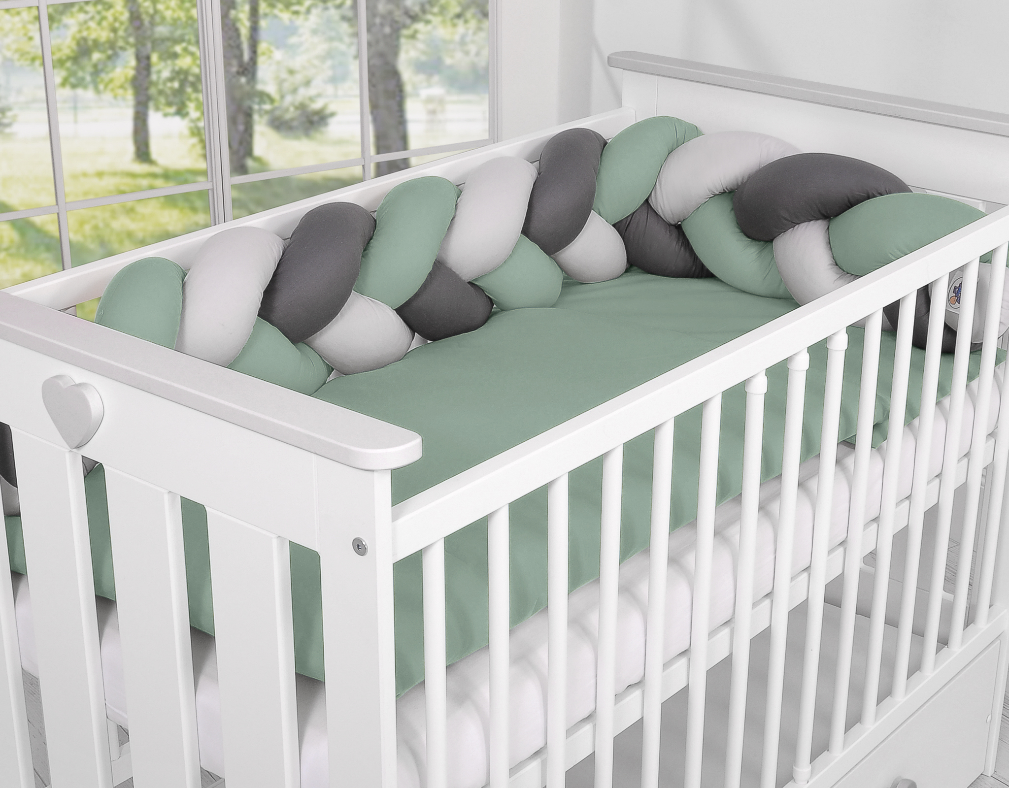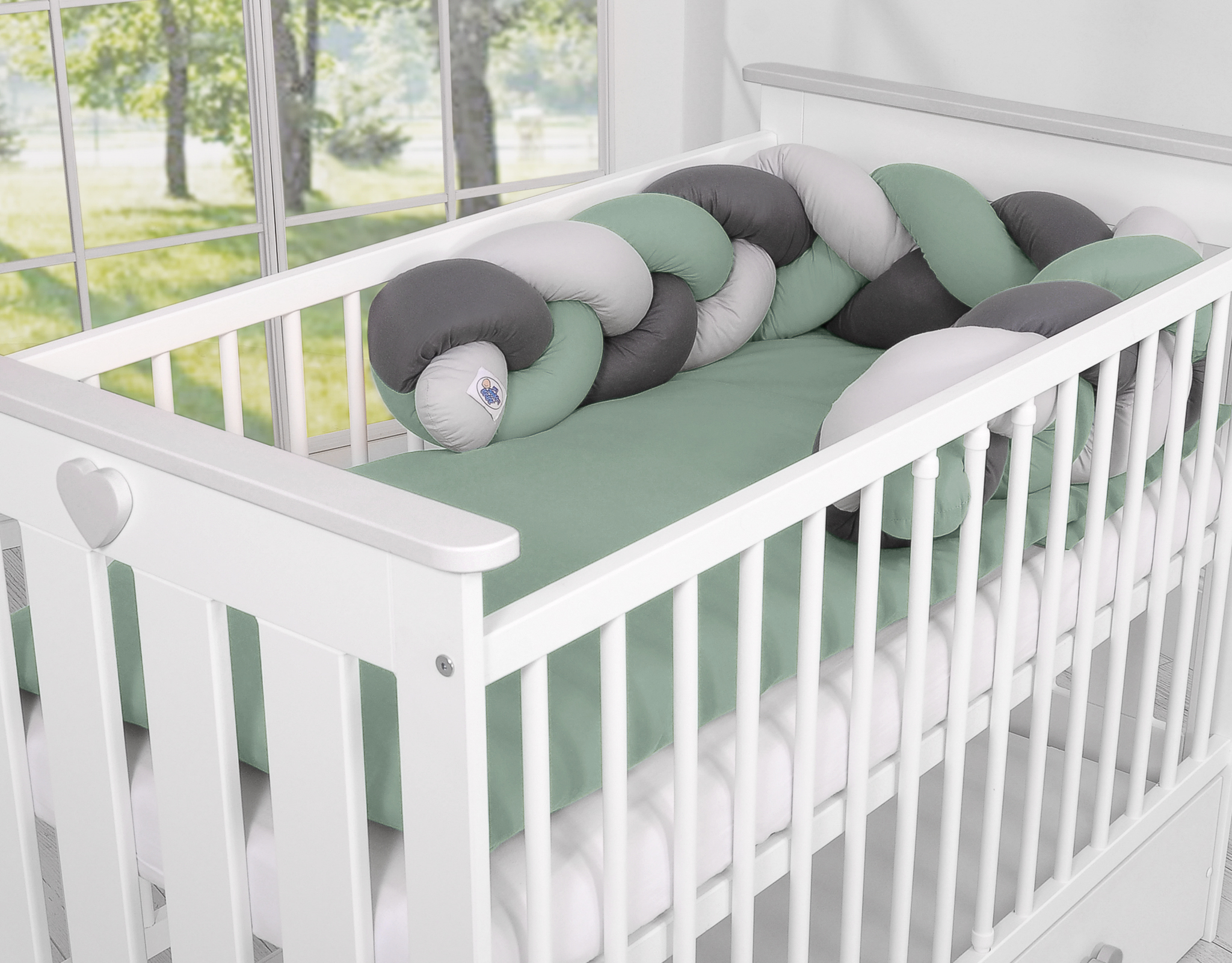 Beautiful, very soft braided cot bumper made from 100% cotton. Can be fixed to the bars.