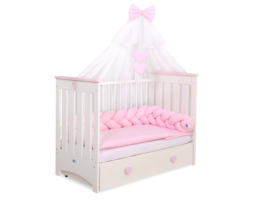 The bumper protects your baby’s hands and feet from getting stuck between the spindles as well as it protects the baby’s head and body from hitting against the cot walls. With the included cotton bows, the nest can be fixed to the bars.
