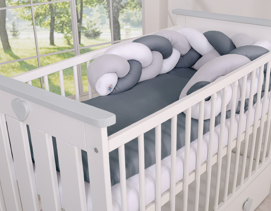 Beautiful, very soft braided cot bumper made from 100% cotton. Can be fixed to the bars.