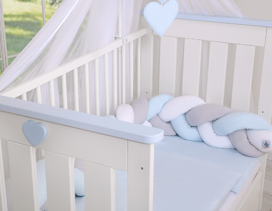 Beautiful, very soft braided cot bumper made from 100% cotton. Can be fixed to the bars.