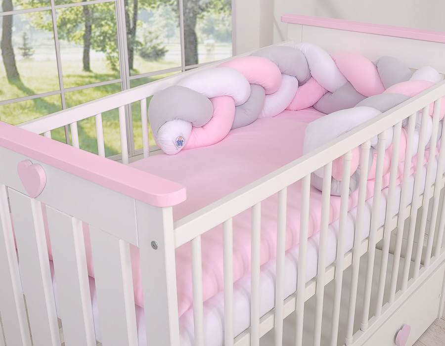 Beautiful, very soft braided cot bumper made from 100% cotton. Can be fixed to the bars.