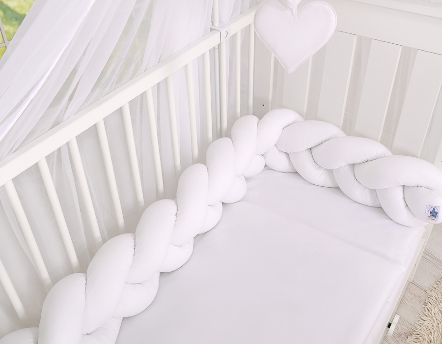 Beautiful, very soft braided cot bumper made from 100% cotton. Can be fixed to the bars.