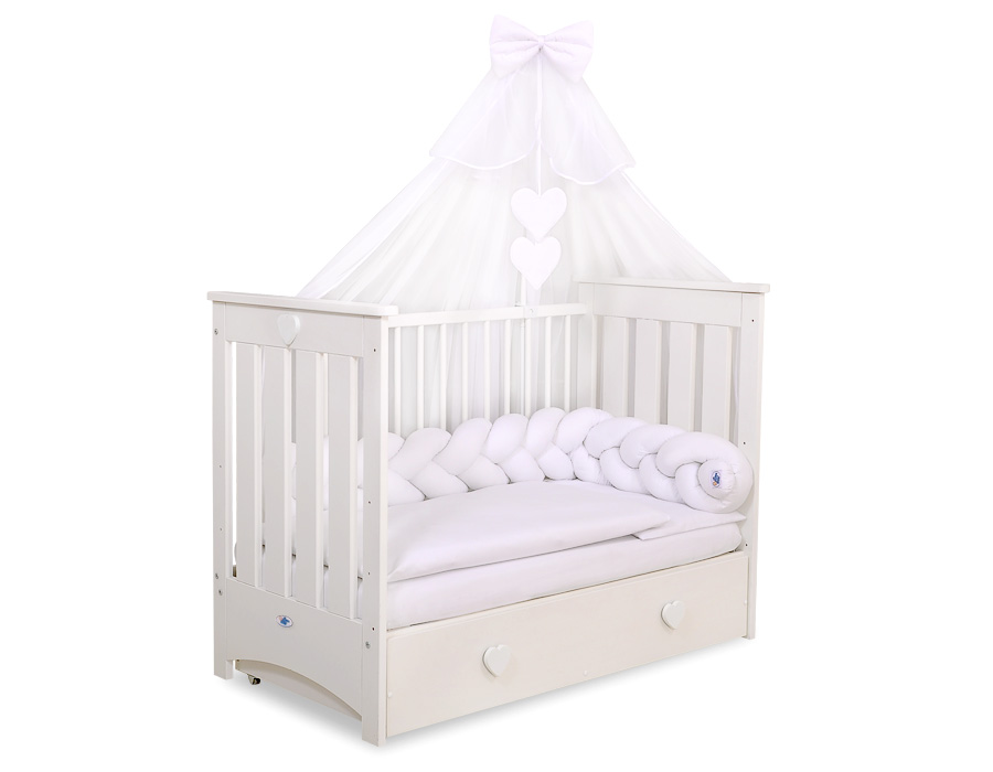 The bumper protects your baby’s hands and feet from getting stuck between the spindles as well as it protects the baby’s head and body from hitting against the cot walls. With the included cotton bows, the nest can be fixed to the bars.