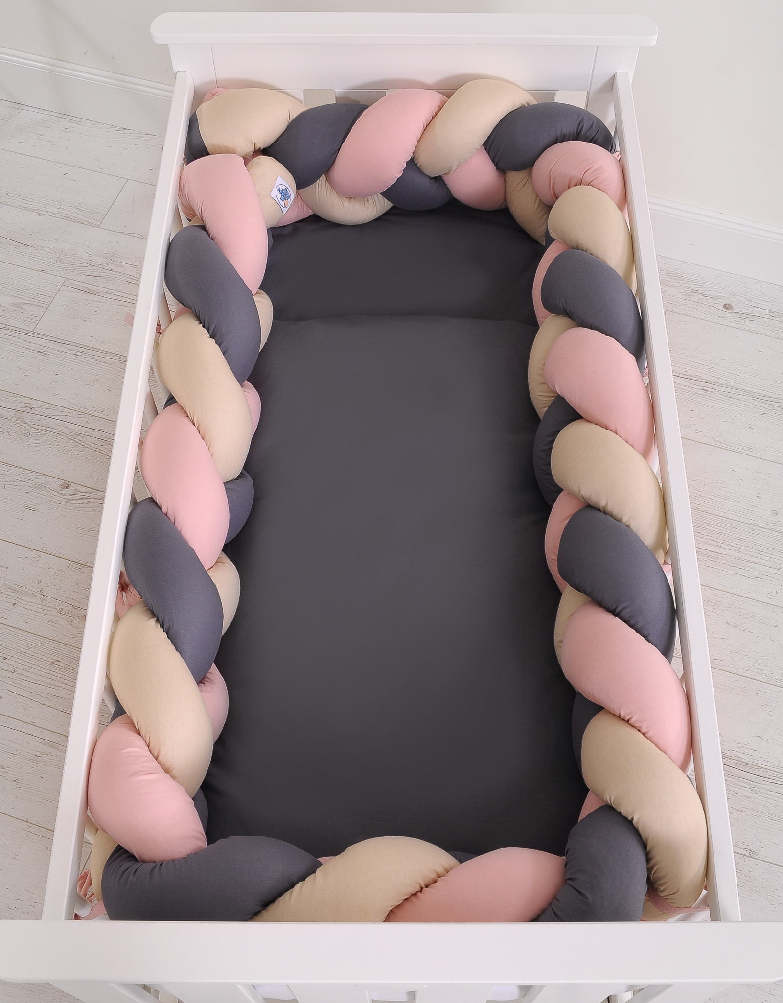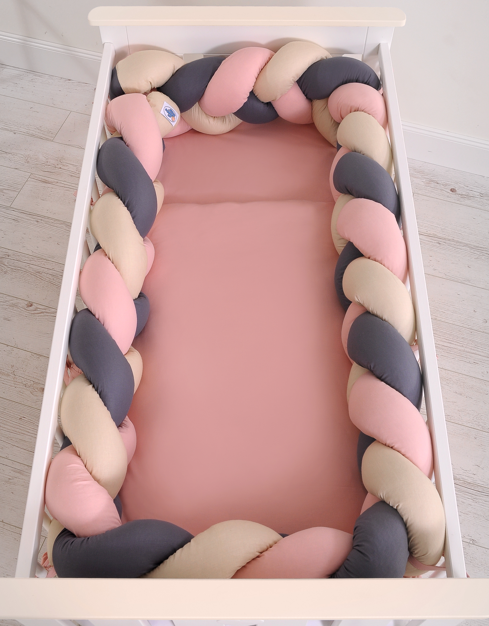 Beautiful, very soft braided cot bumper made from 100% cotton. Can be fixed to the bars.