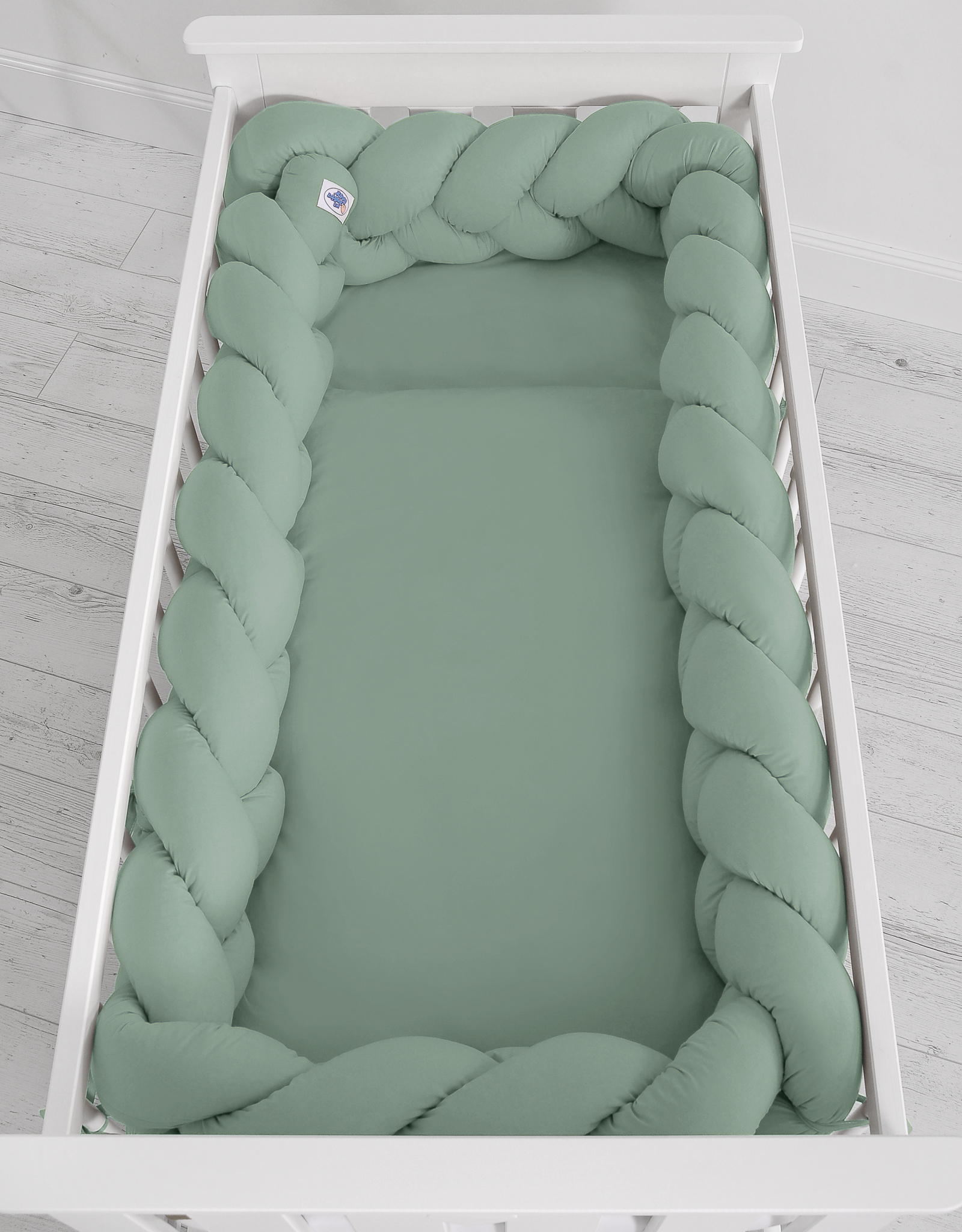 Beautiful, very soft braided cot bumper made from 100% cotton. Can be fixed to the bars.