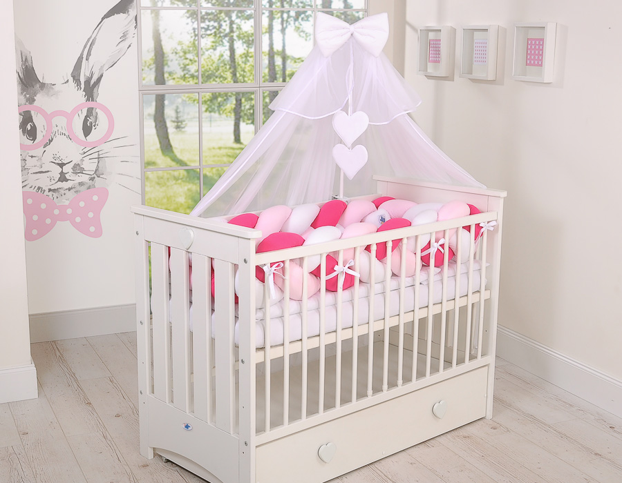 Beautiful, very soft braided cot bumper made from 100% cotton. Can be fixed to the bars.