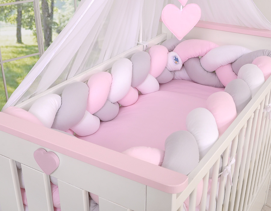 Beautiful, very soft braided cot bumper made from 100% cotton. Can be fixed to the bars.