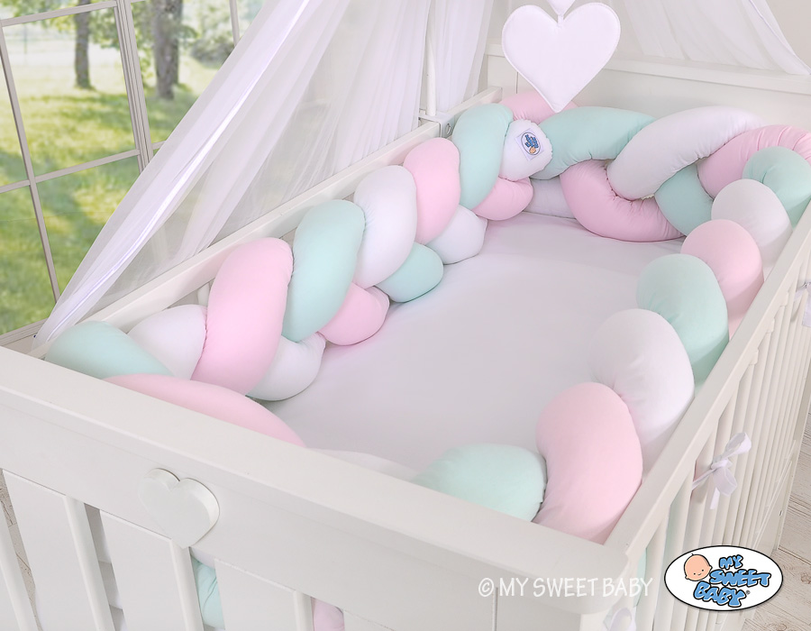 Beautiful, very soft braided cot bumper made from 100% cotton. Can be fixed to the bars.