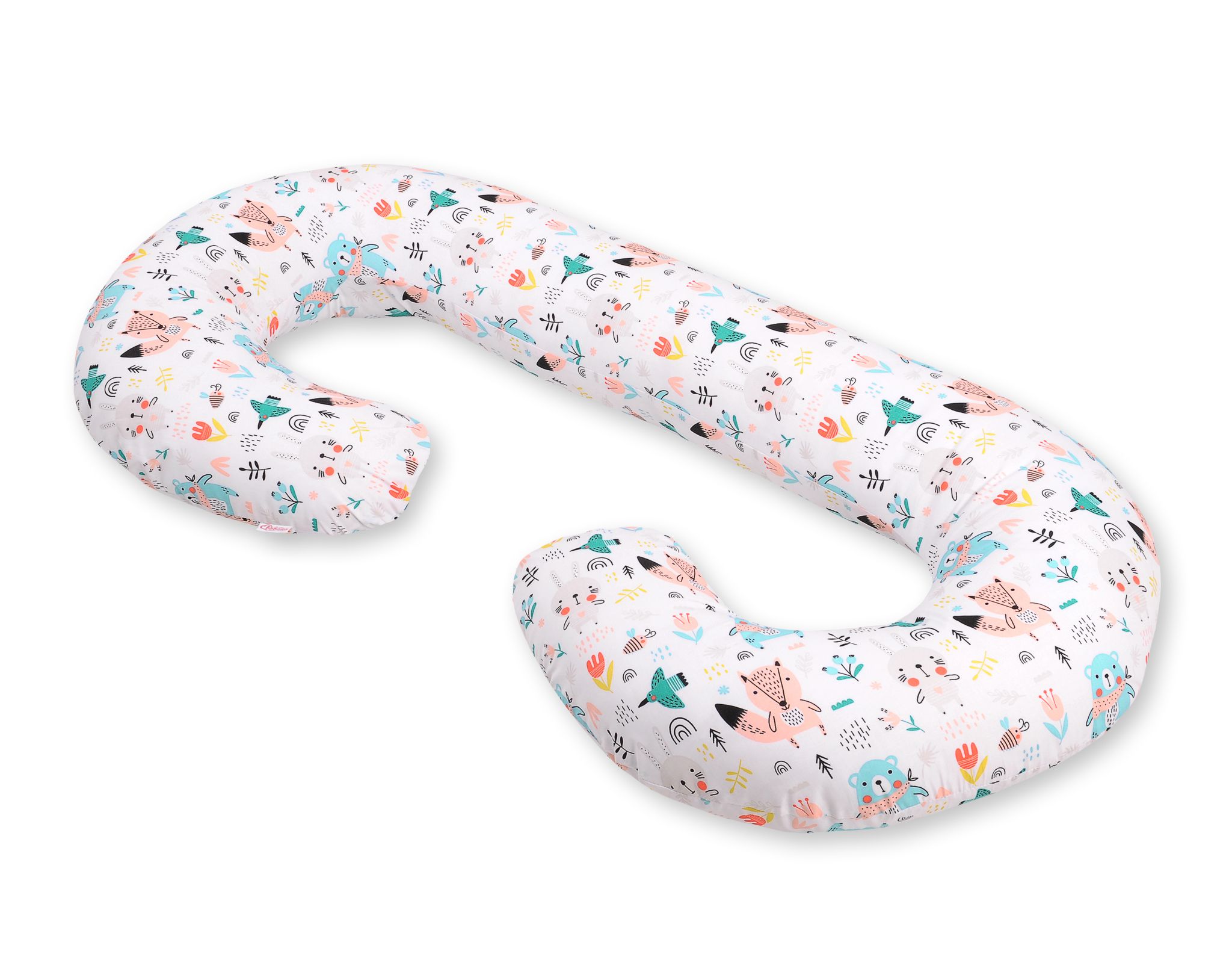 During feeding: invaluable help during breast and bottle feeding. The maternity pillow supports the arms and the back of the mother. The special filling helps to stabilize the position of the mother and the baby during feeding in a sitting or lying position. The maternity pillow can be placed under the back and under the arms – so it supports the back, relieves the arms and allows a comfortable position for mother and child while bottle feeding.