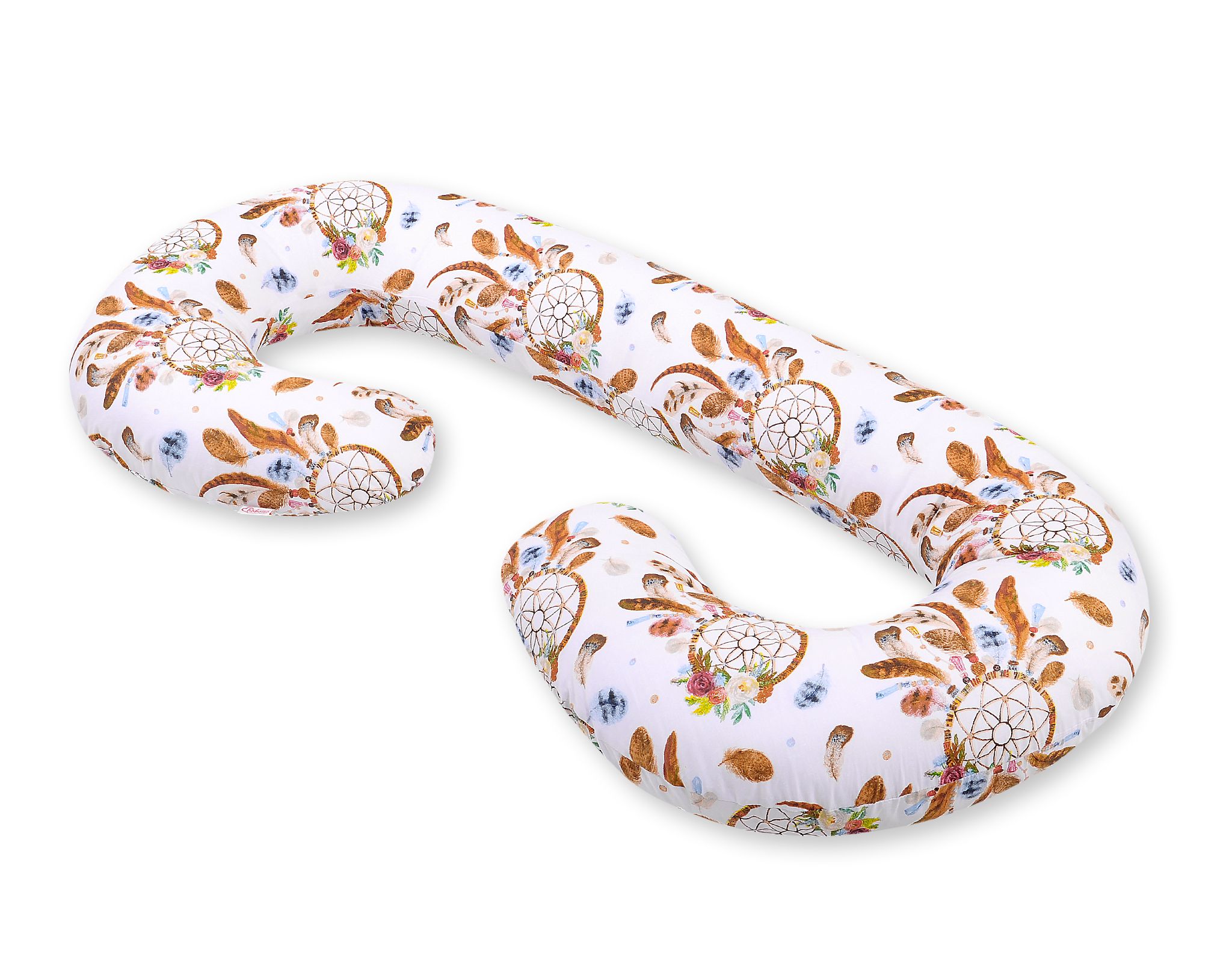 Large, very comfortable, a maternity support pillow for comfortable sleeping on the side. It allows every future mother to feel comfortable during rest and sleep, breastfeeding and bottle feeding.
