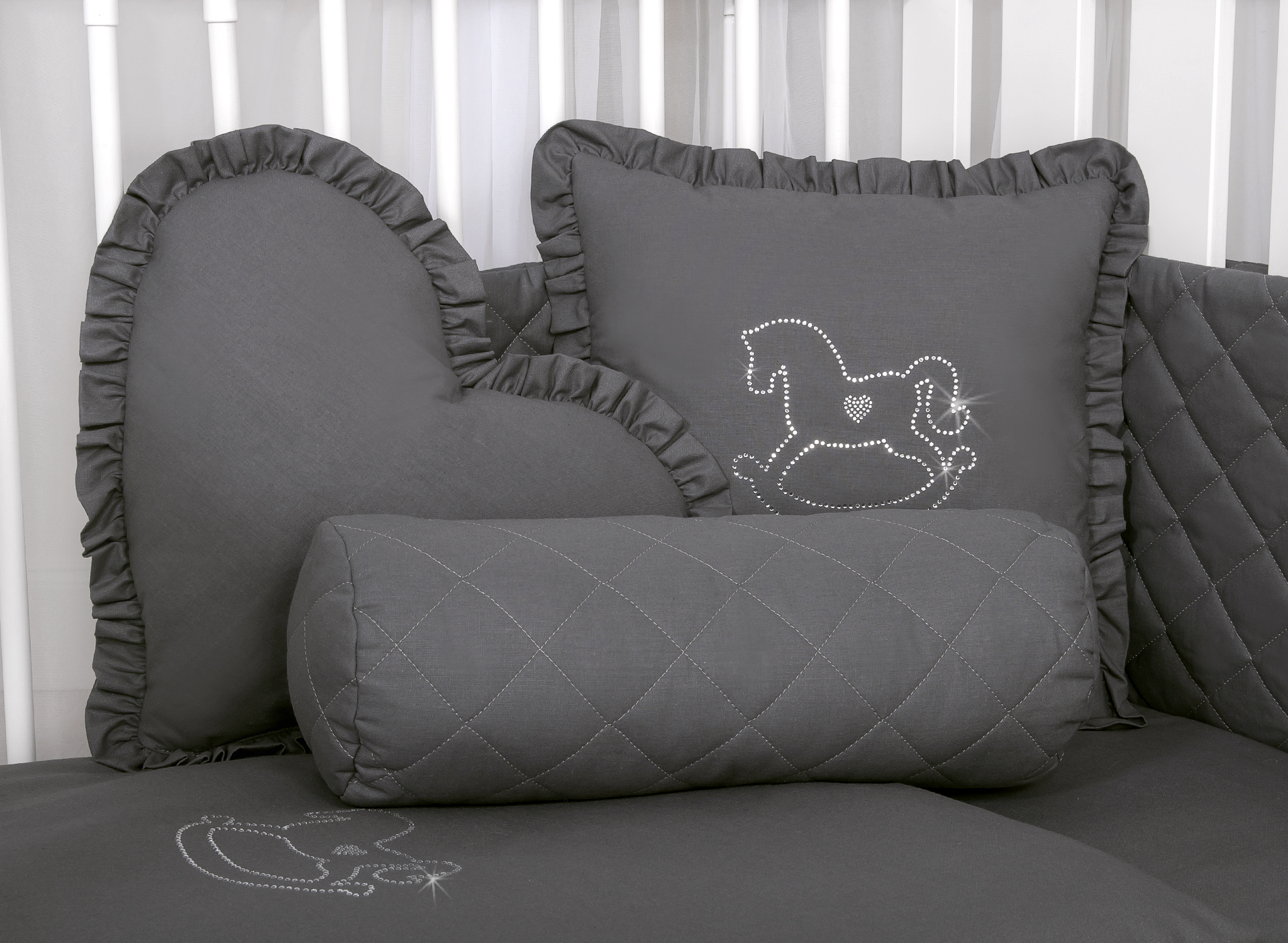 Elegant heart-shaped pillow. Decorated with a frill. Outer fabric made of 100% cotton (not demountable). The filling inside the pillow it is Eco Fillball- atested Silicone Balls – “artificial fluff” for pillows- filling ensures proper settlement of the baby and air circulation. It will work excellent as a decoration of the children’s room. The heart is a whole- without a removable pillowcase. It is a beautiful set with our beddings.