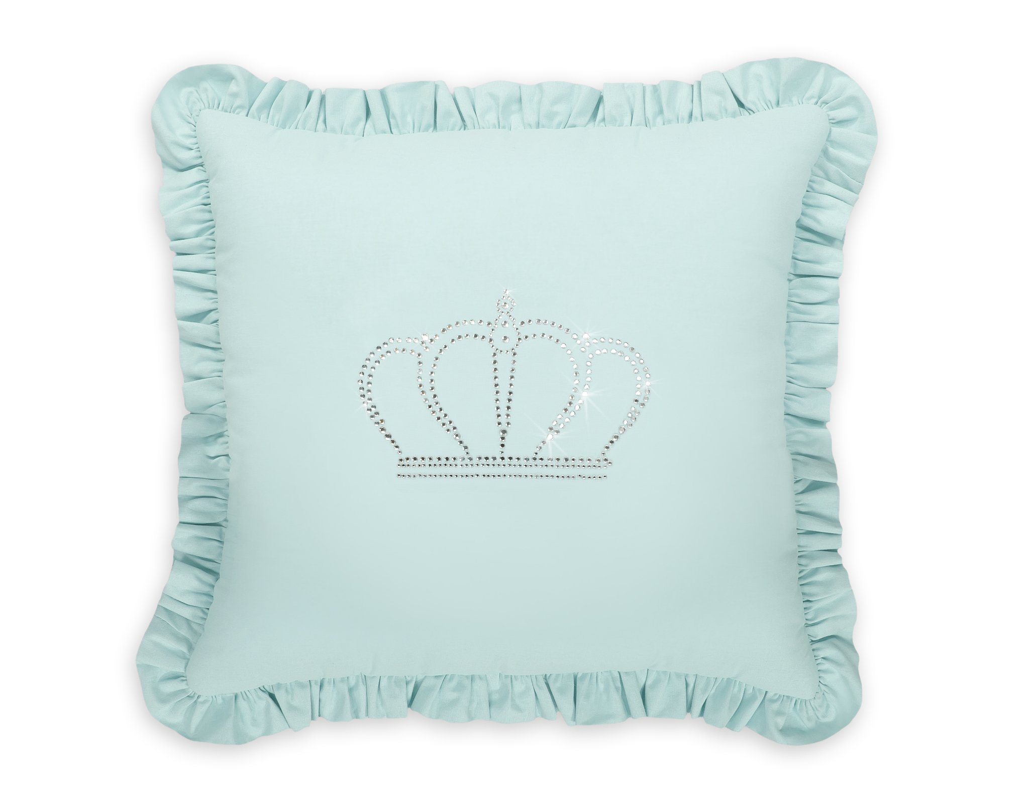 Elegant pillow with application. Decorated with a frill. The pillowcase catches the eye with a shimmering application made of fine zircons on smooth cotton fabric. Outer fabric made of 100% cotton (not demountable). The filling inside the pillow it is Eco Fillball- atested Silicone Balls – “artificial fluff” for pillows- filling ensures proper settlement of the baby and air circulation. It will work excellent as a decoration of the children’s room. The pillow is a whole- without a removable pillowcase. It is a beautiful set with our beddings.