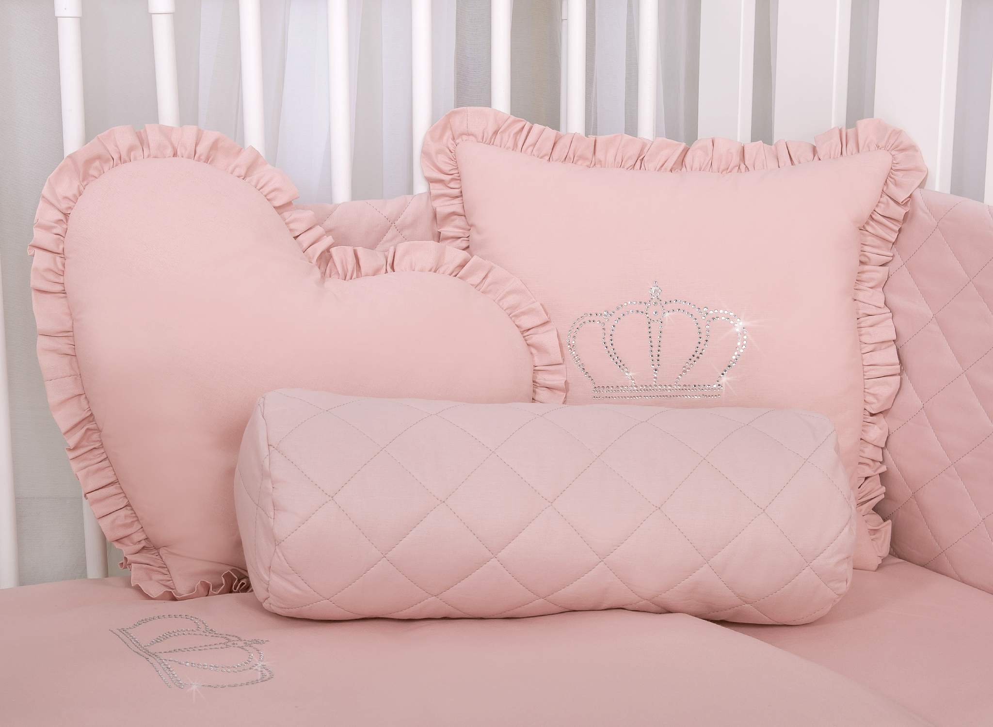 Elegant quilted pillow. Outer fabric made of certified quilted cotton (not demountable). The filling inside the pillow it is Eco Fillball- atested Silicone Balls – “artificial fluff” for pillows- filling ensures proper settlement of the baby and air circulation. It will work excellent as a decoration of the children’s room. The roller pillow is a whole- without a removable pillowcase. It is a beautiful set with our beddings.