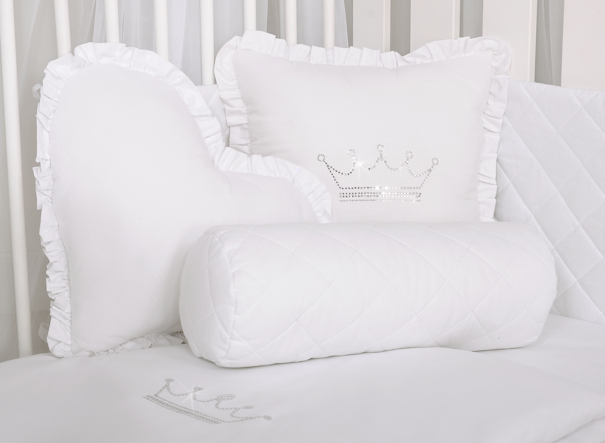 Elegant quilted pillow. Outer fabric made of certified quilted cotton (not demountable). The filling inside the pillow it is Eco Fillball- atested Silicone Balls – “artificial fluff” for pillows- filling ensures proper settlement of the baby and air circulation. It will work excellent as a decoration of the children’s room. The roller pillow is a whole- without a removable pillowcase. It is a beautiful set with our beddings.