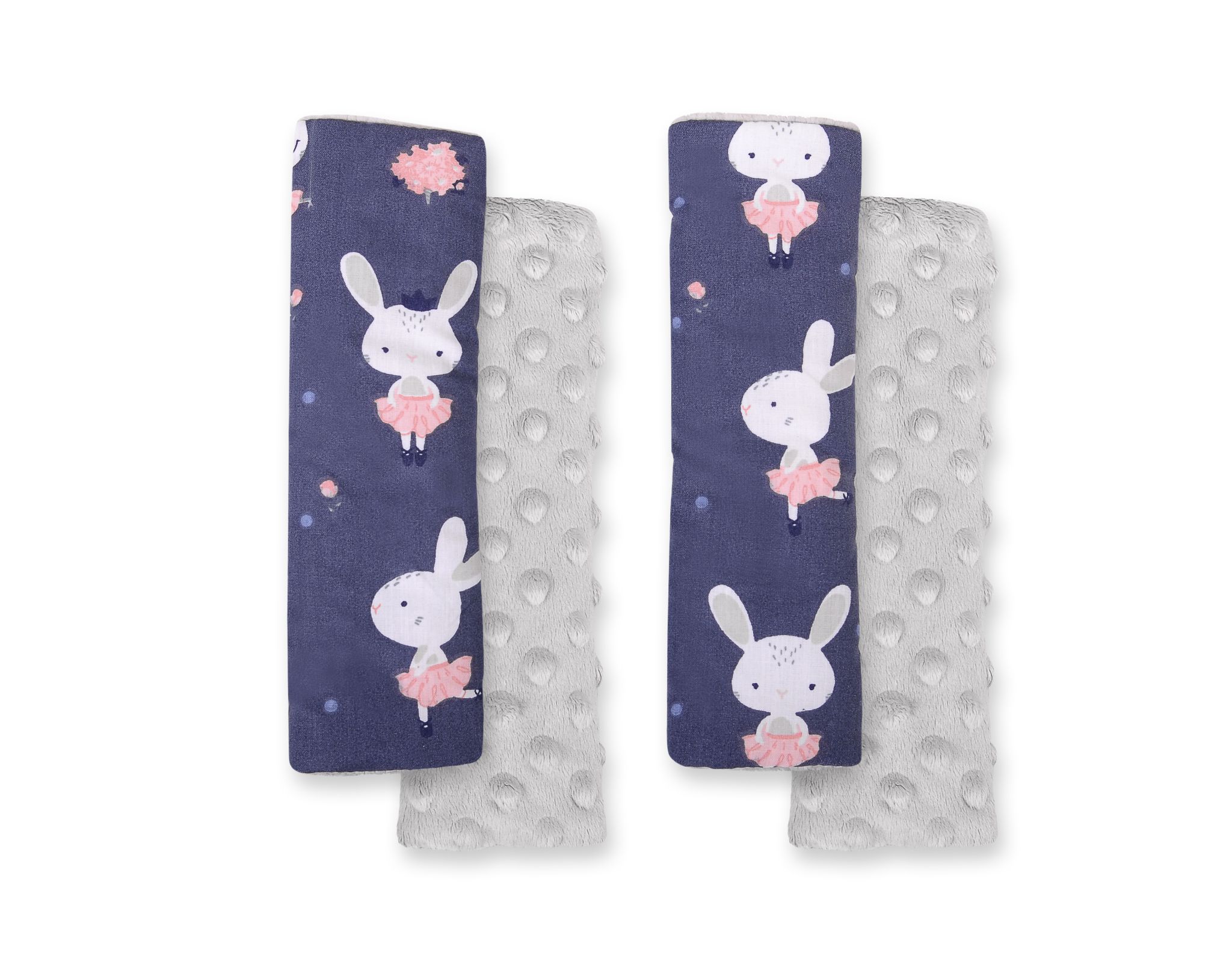 Double sided pads BOBONO for seat belts – blue rabbits/gray