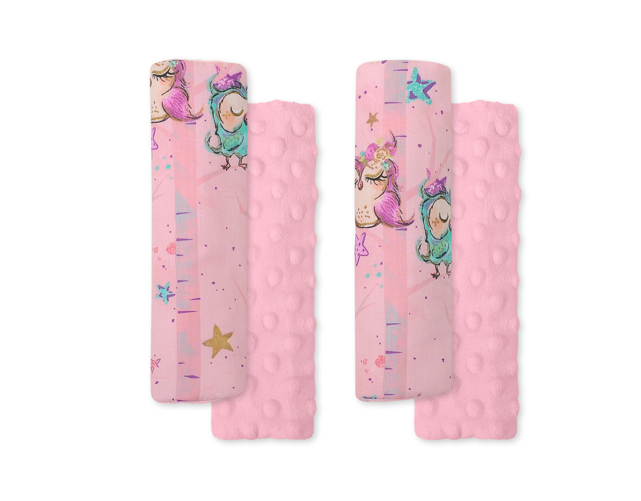 Double sided pads BOBONO for seat belts – owls pink-mint