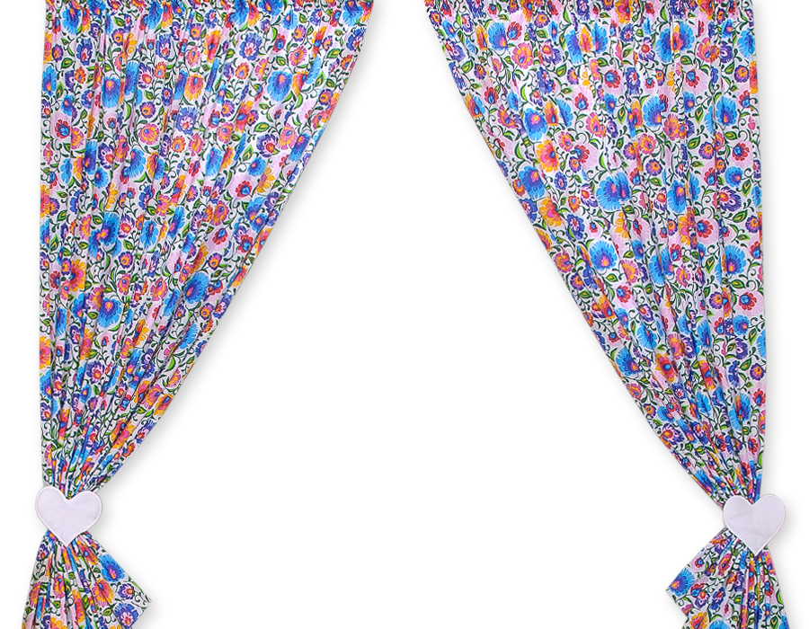 – 2x curtain 155×155 cm, – 2x sashes with decorative pendants – made of 100% cotton, – washable,