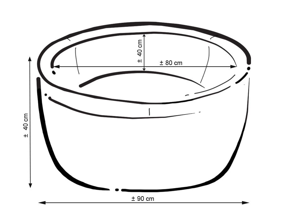 The pool is round with a diameter of 90cm. Side height -40cm. Made of soft foam. Removable, zippered cover made of soft minky fleece.