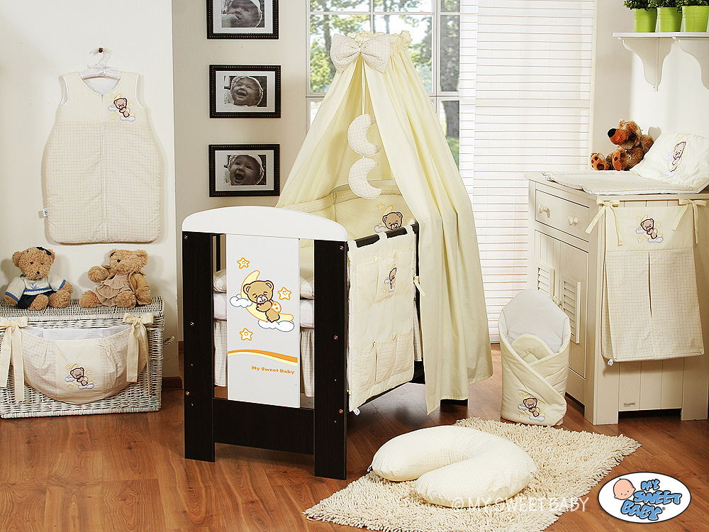 – Canopy made of fabric 160x250cm (100% cotton)- big canopy allows you to make lovely drapes around the cot or cot bed.