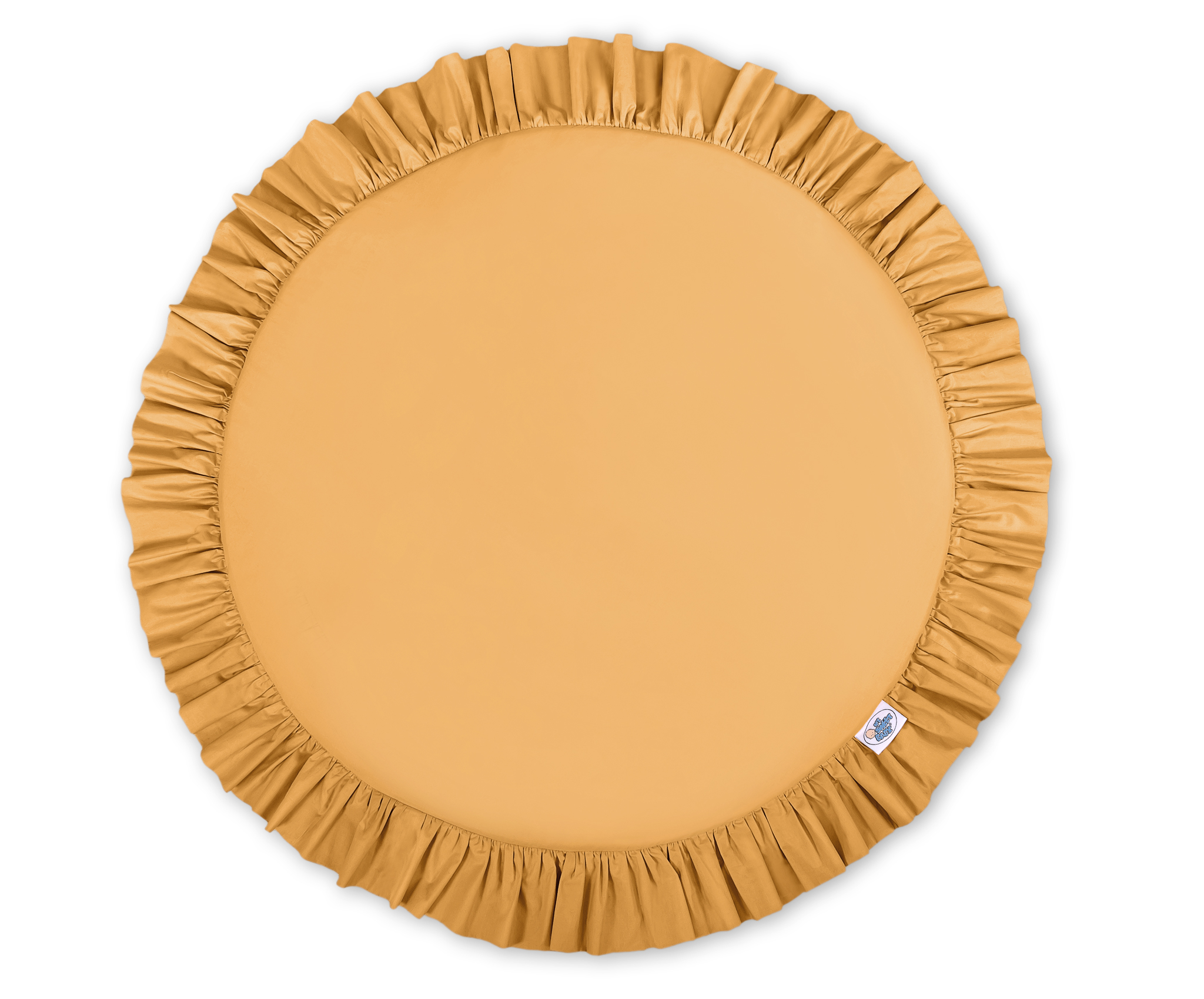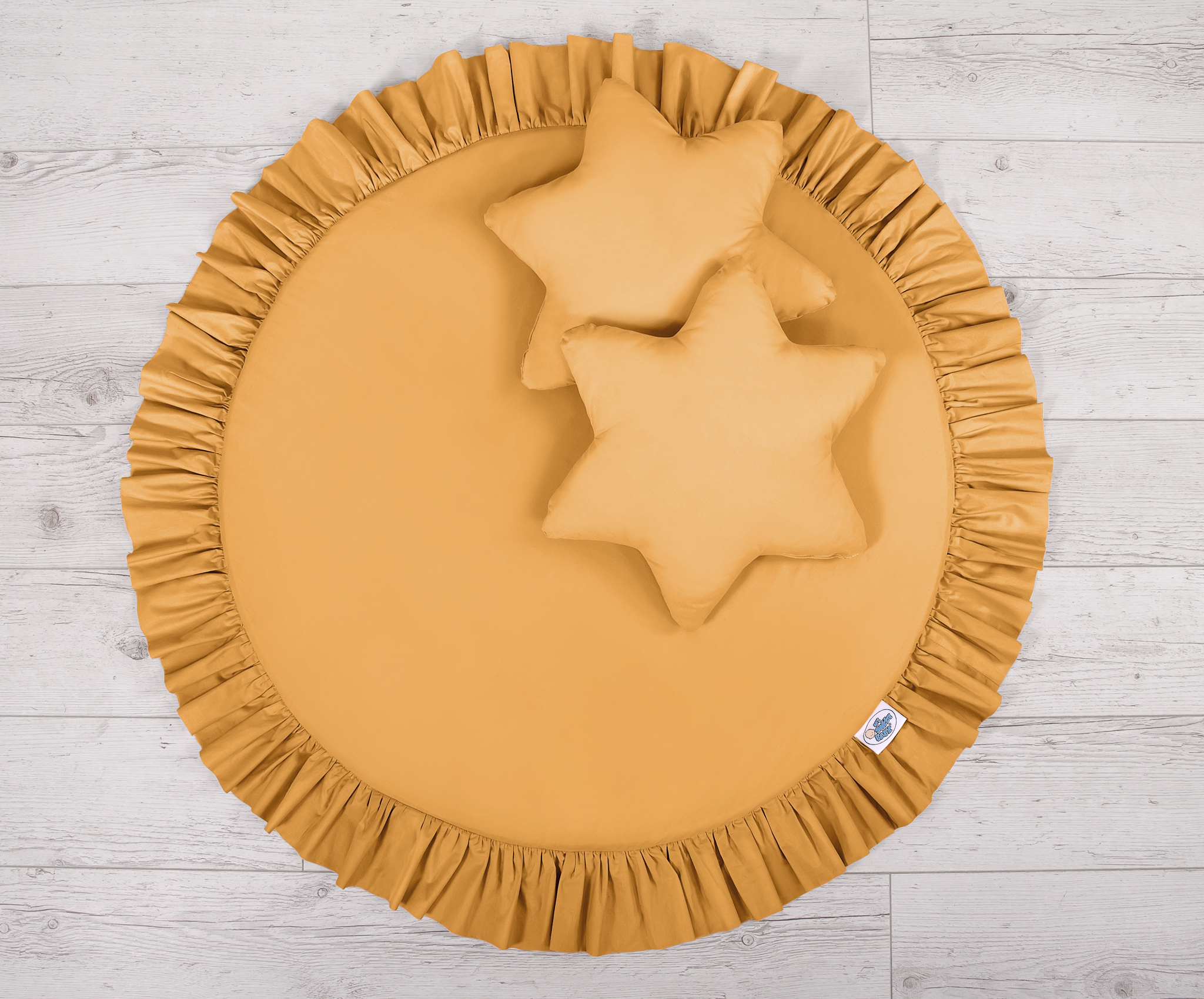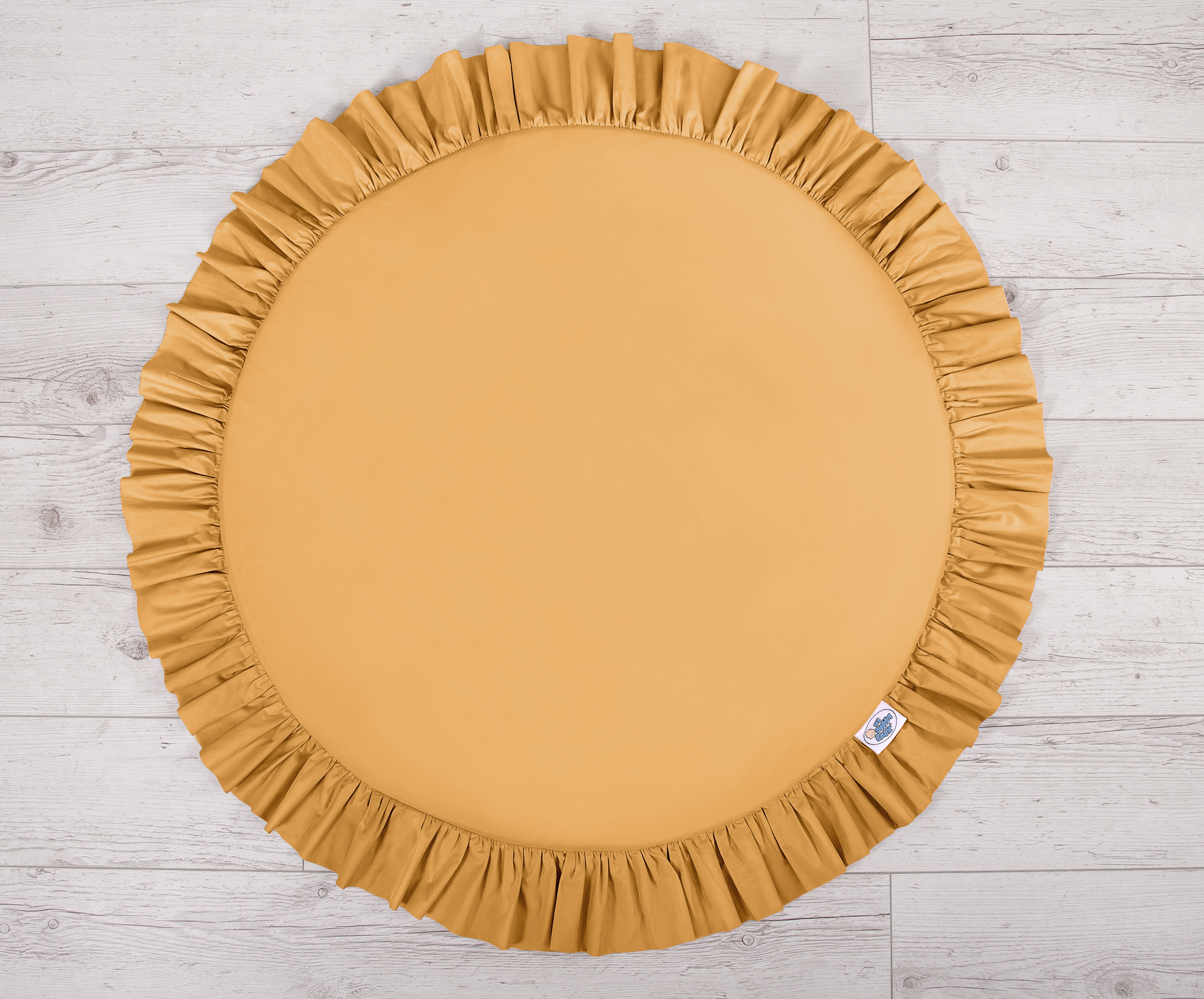 A floor play mat with ruffle. It can be used as a carpet,  play mat, or as a floor mat for the long canopy. From the first days of life can it be used as a place to rest or as a tummy time play mat. It has a soft filling that perfectly isolates from the hard and cold floor. The cover is made of OKOTEX certified 100% cotton.  The bottom of the play mat is made of a modern, anti-allergic, attested material. The bottom can be removed and the cover can be washed.
