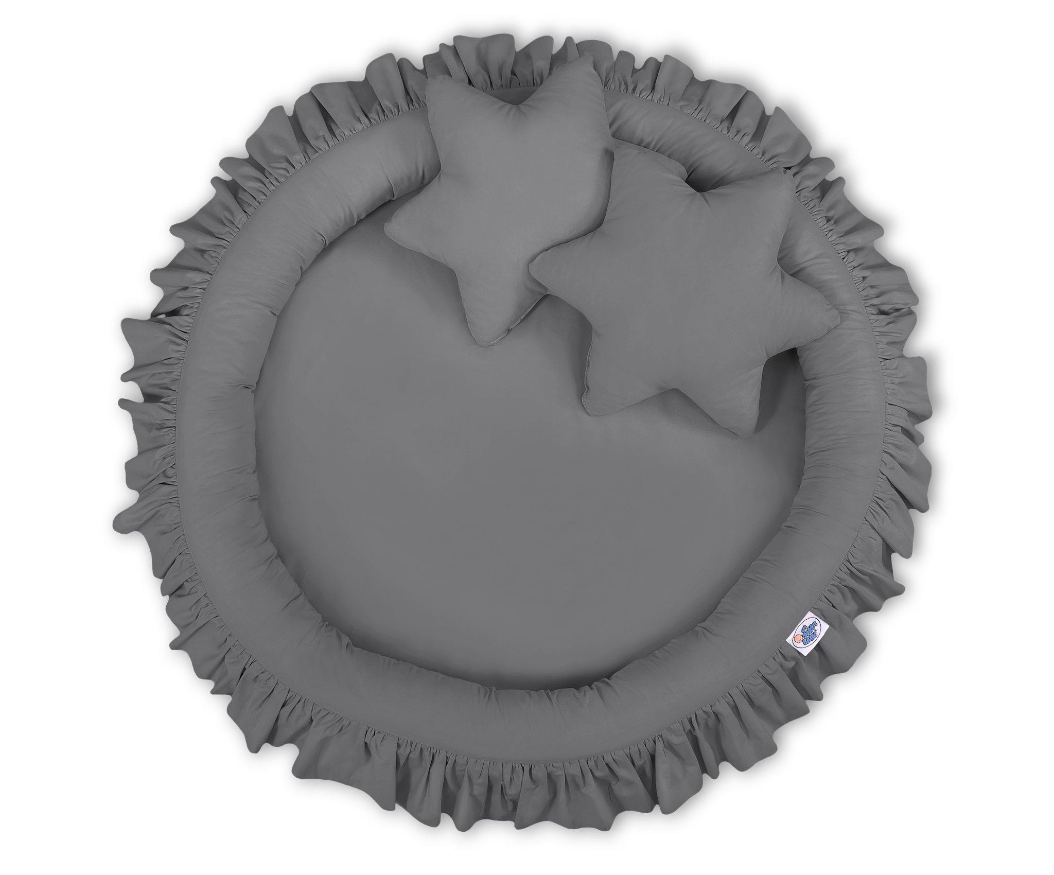 Lovely nest with a flounce. A functional and practical nest to play. The nest is ideal as a place to play, or as a floor nest for the long sky. The nest with a flounce can be used since the first days of life as a safe place to rest. The soft edges provide safety for the babies. It is perfect as a playground where many toys find their place. Combined with the long sky, creates the flounce nest a beautiful play tent.
