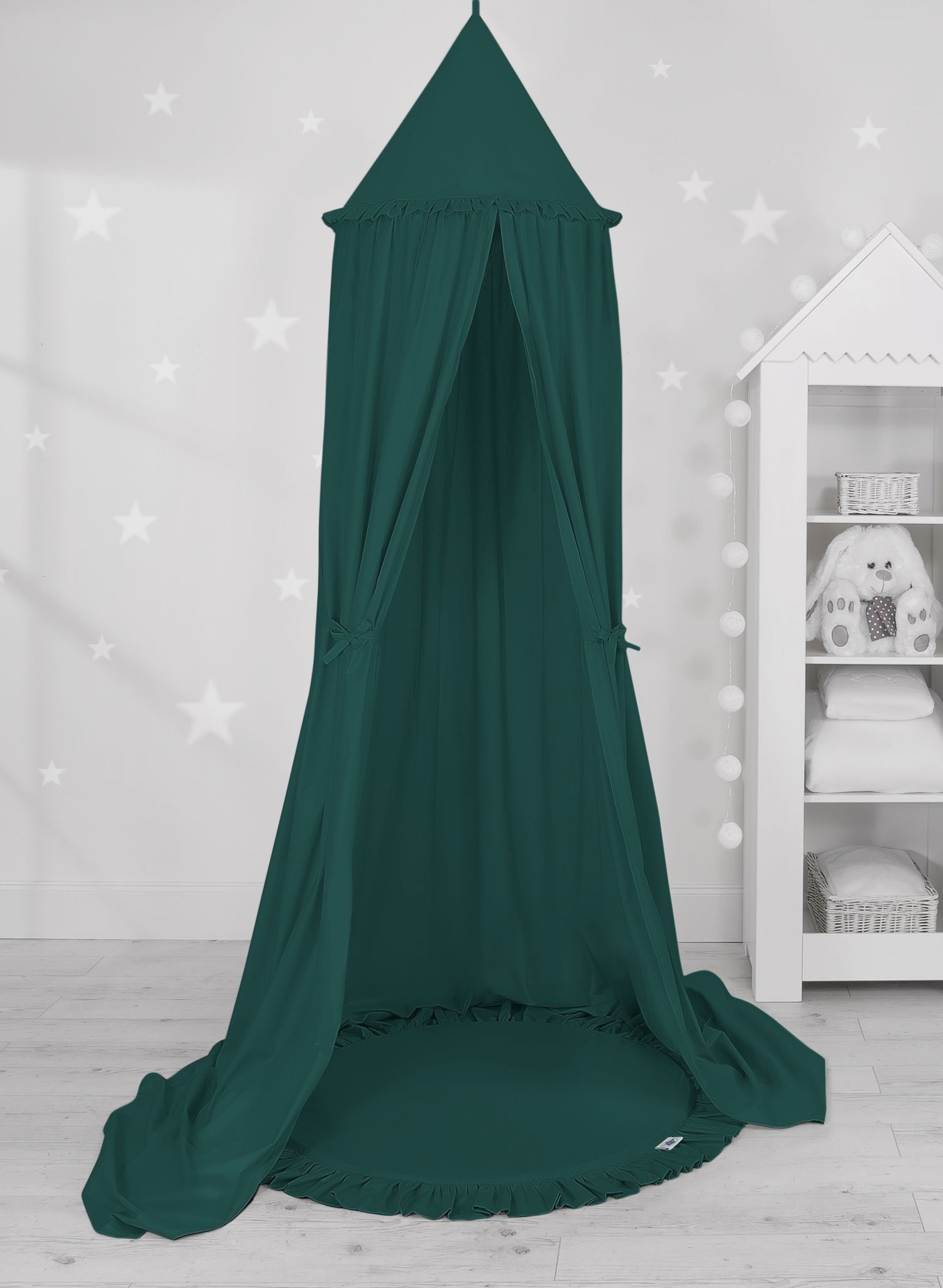 Set: Hanging baldachin for children’s room cotton + Floor play mat- bottle green