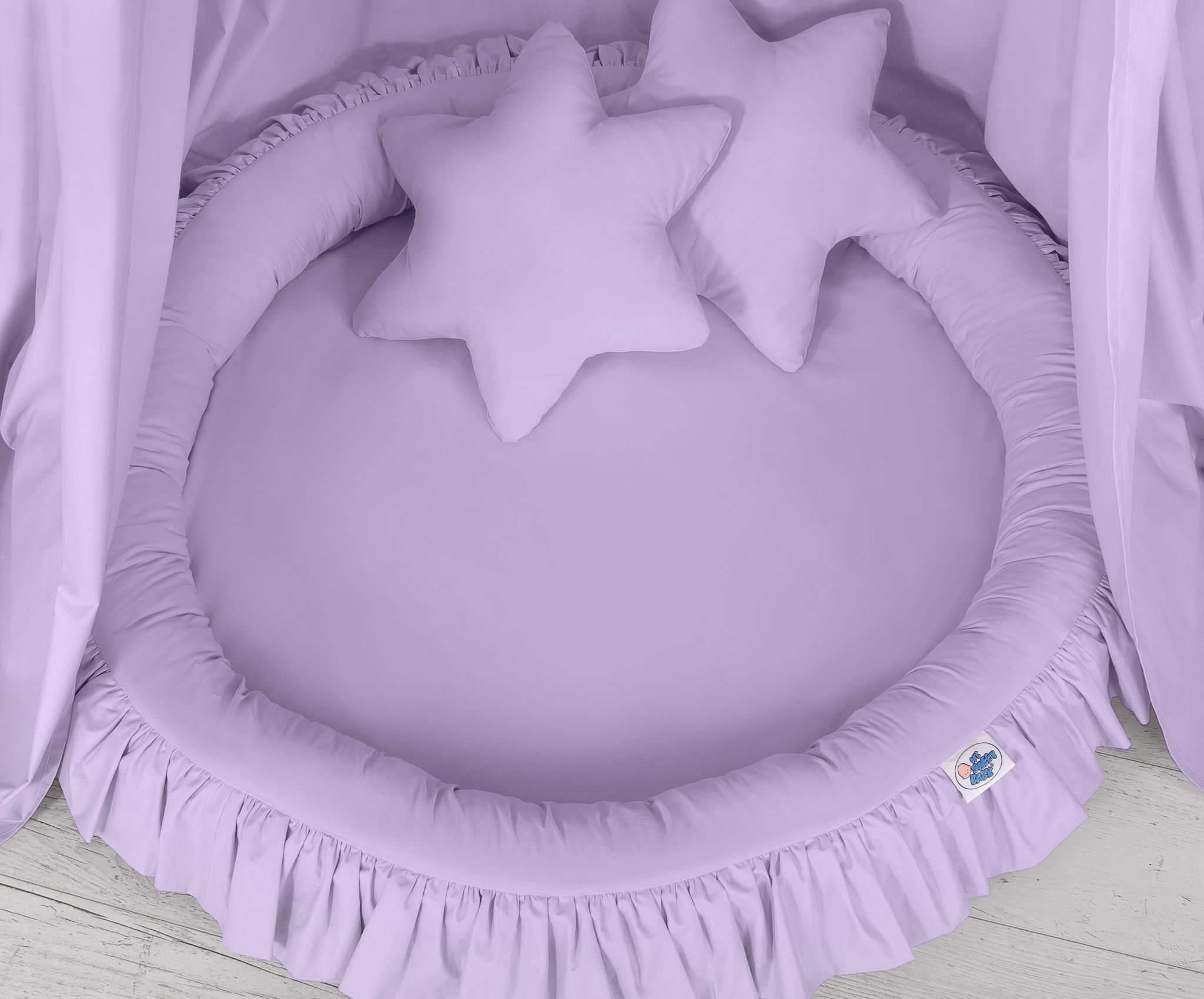 Set: Hanging baldachin for children’s room cotton + nest with flounce + pillows – lila