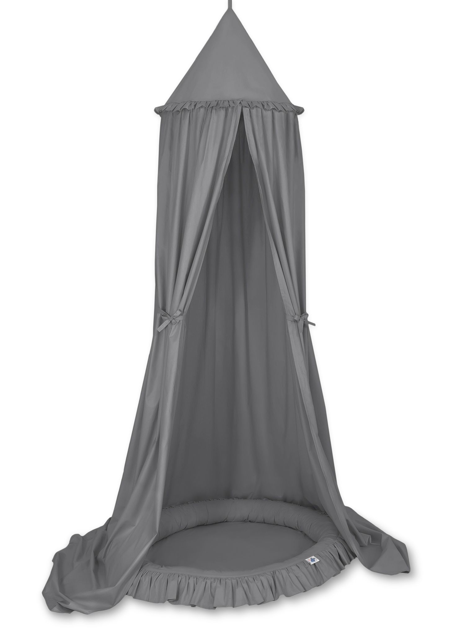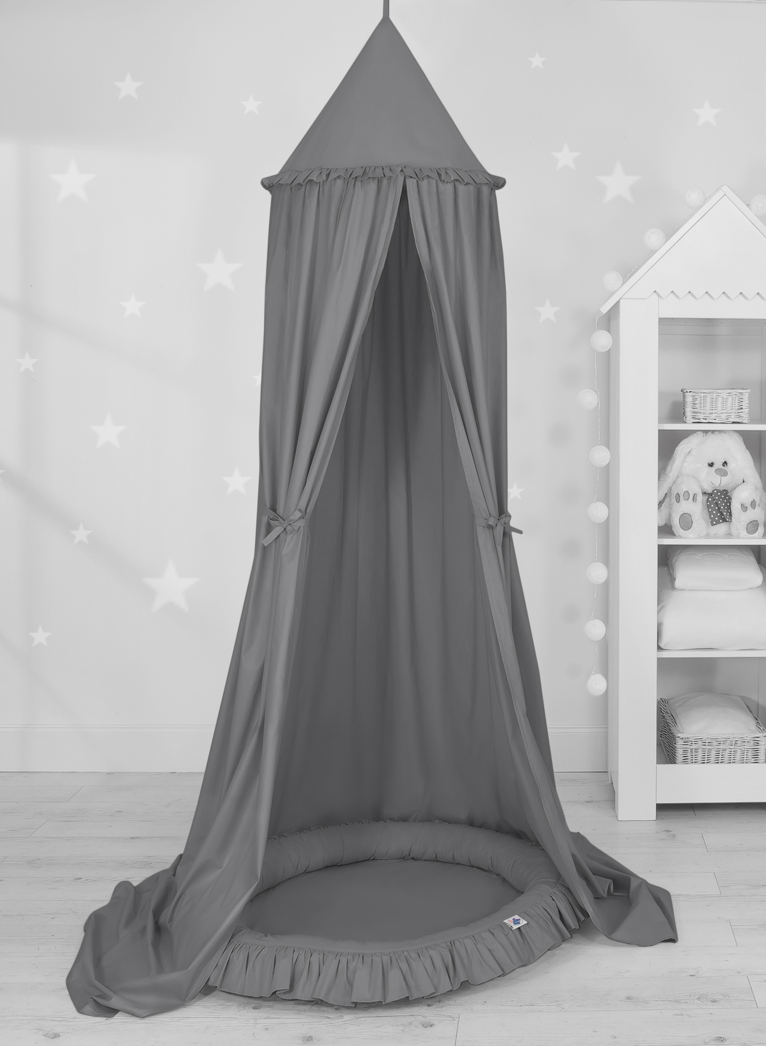 An effective long hanging canopy. A beautiful element it the children’s room. It can be used as a unique decoration of a baby cot, as well as it can create a wonderful  place to play. Hanging over the cot protect the canopy against too much light and noise creating a cozy  and safe place to rest inside the cot. The canopy can be easily mounted to the ceiling. The length of 260 cm allows to arrange the ends on the floor. This creates a perfect hiding place and playground for older children. The canopy is made of Okotex certificated, 100% cotton fabric. On the sides there are practical ribbons for tying the canopy and create a beautiful tent. The rim on the top can be removed. The fabric is washable by 30 Degrees. Combined with lovely nest with a flounce it will become a perfect place for fun. The soft edges provide safety for the babies. The edge is filled with approved, non-allergenic filling: Eco –Fillball fibers. They are soft, resilience and they assure the proper air circulation. The bottom of the baby nest with flounce is made of a modern, anti-allergenic, attested material. The bottom inlay can be removed and the cover can be washed at 30 degrees