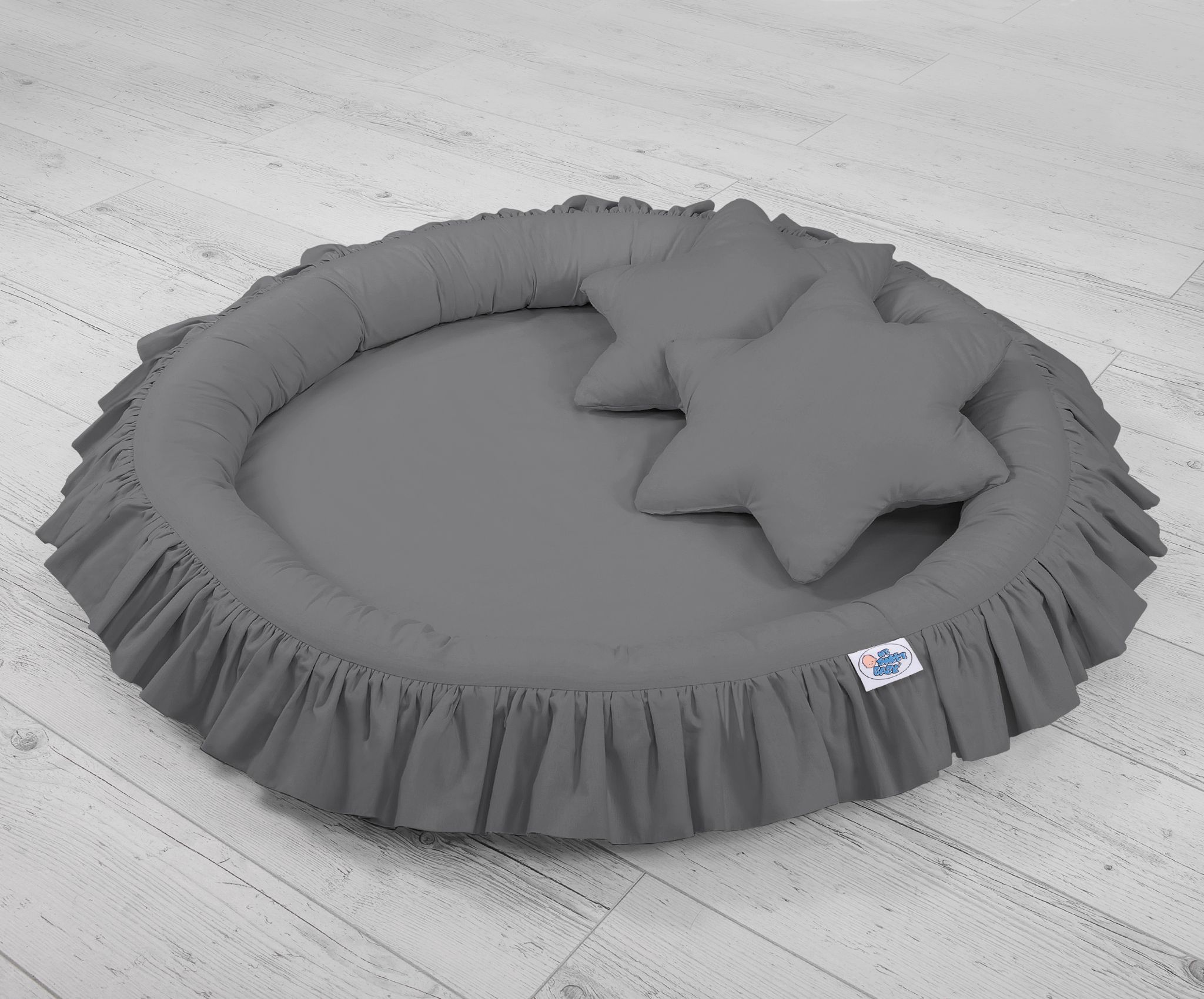Set: Hanging canopy + Nest with flounce + pillows – anthracite