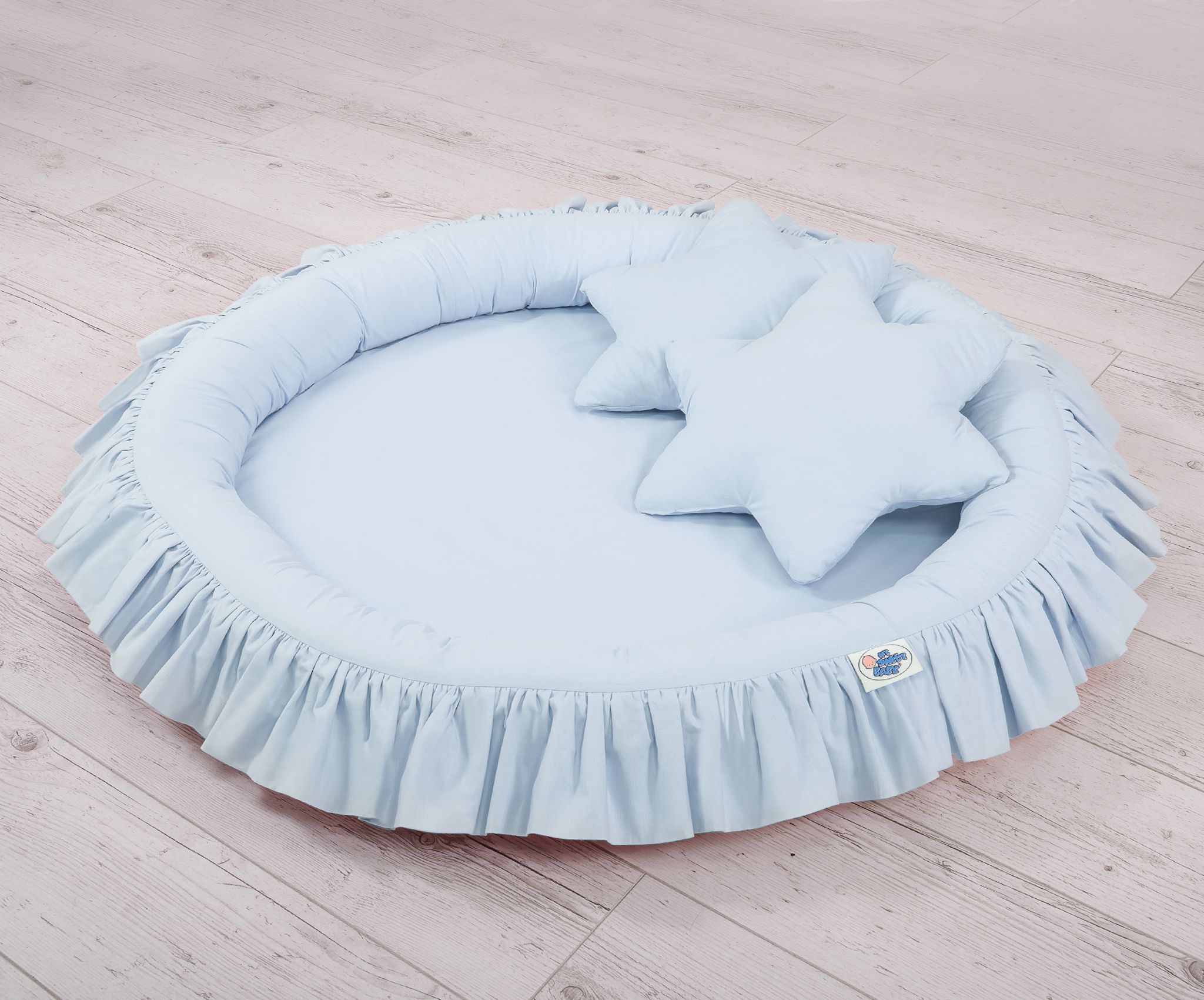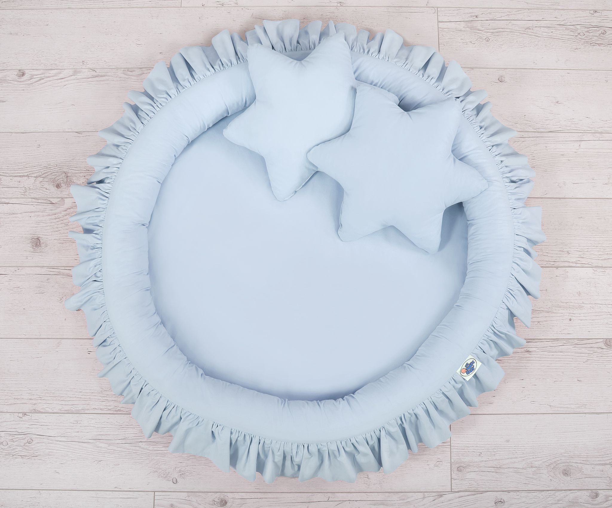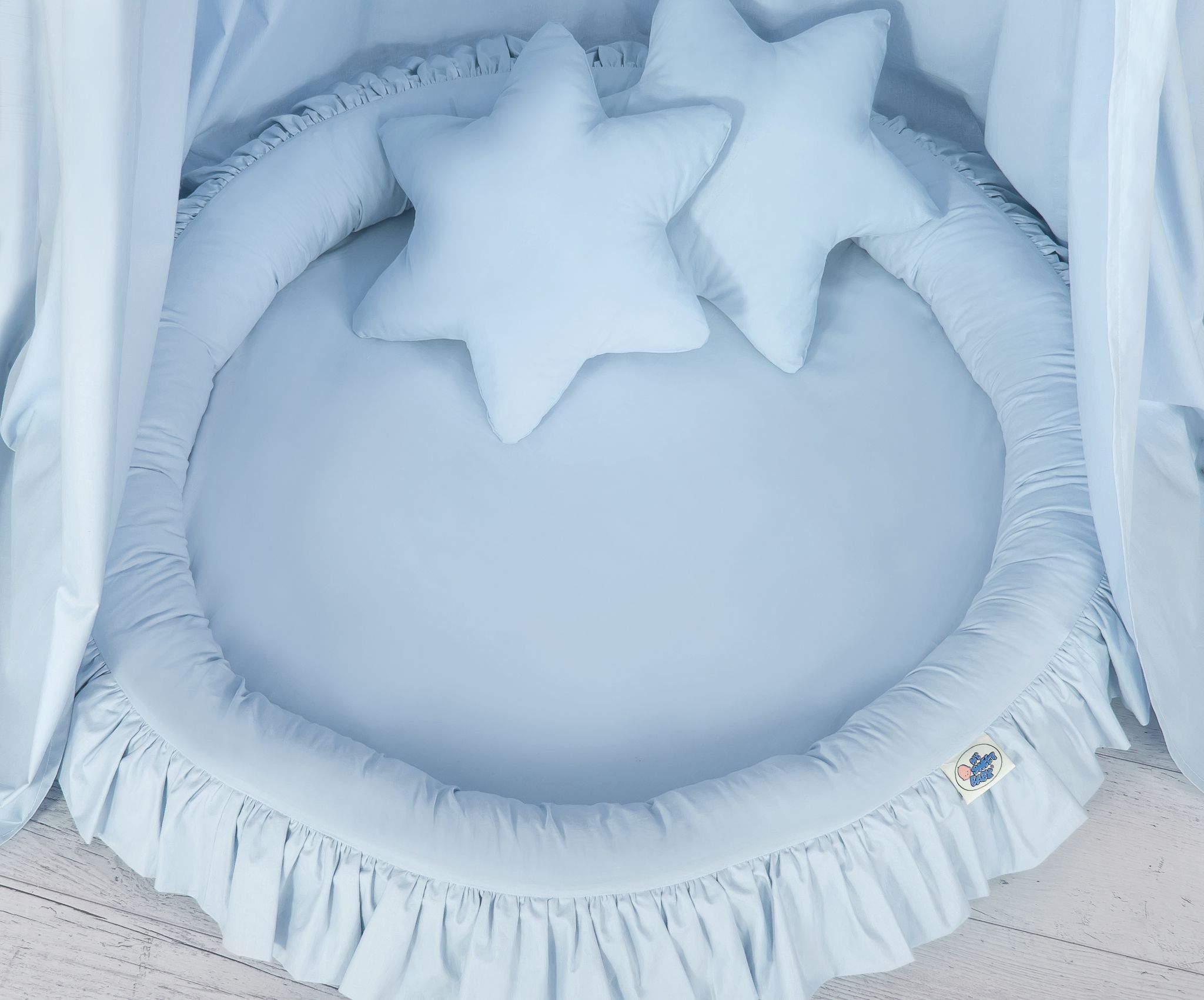 Set: Hanging canopy + Nest with flounce + pillows – blue