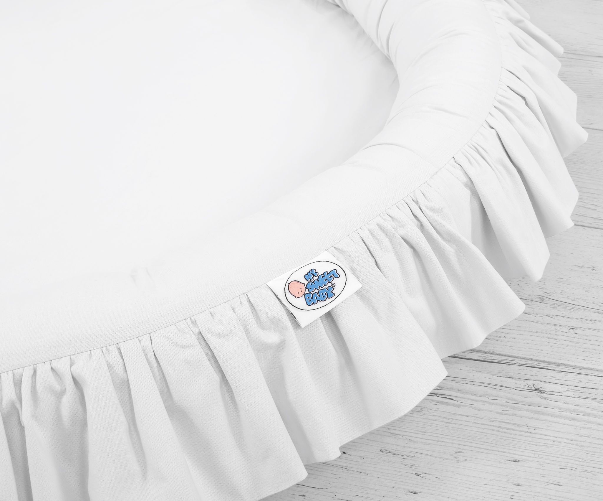 Set: Hanging canopy + Nest with flounce + pillows – white