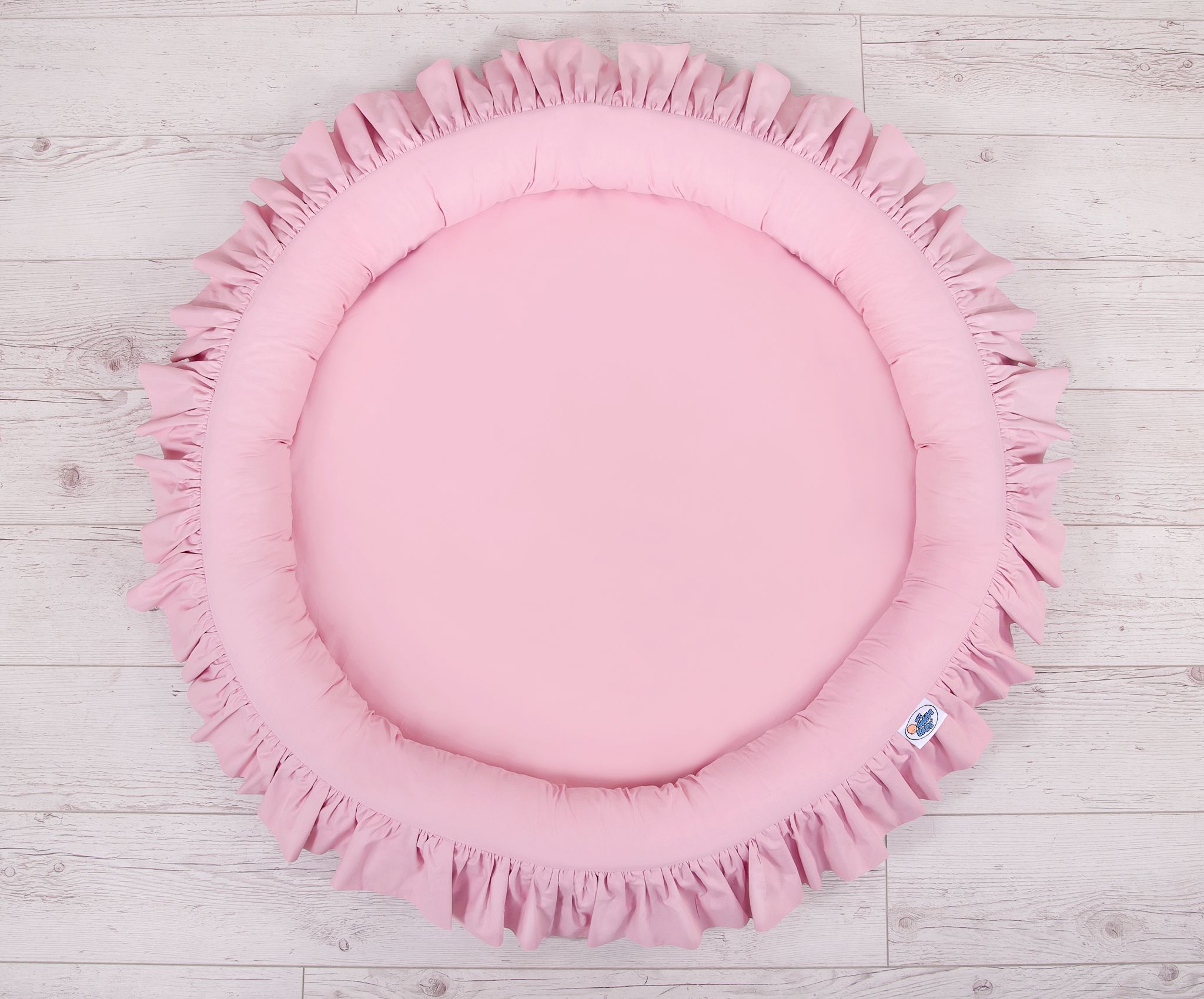 An effective long hanging canopy. A beautiful element it the children’s room. It can be used as a unique decoration of a baby cot, as well as it can create a wonderful  place to play. Hanging over the cot protect the canopy against too much light and noise creating a cozy  and safe place to rest inside the cot. The canopy can be easily mounted to the ceiling. The length of 260 cm allows to arrange the ends on the floor. This creates a perfect hiding place and playground for older children. The canopy is made of Okotex certificated, 100% cotton fabric. On the sides there are practical ribbons for tying the canopy and create a beautiful tent. The rim on the top can be removed. The fabric is washable by 30 Degrees. Combined with lovely nest with a flounce it will become a perfect place for fun. The soft edges provide safety for the babies. The edge is filled with approved, non-allergenic filling: Eco –Fillball fibers. They are soft, resilience and they assure the proper air circulation. The bottom of the baby nest with flounce is made of a modern, anti-allergenic, attested material. The bottom inlay can be removed and the cover can be washed at 30 degrees