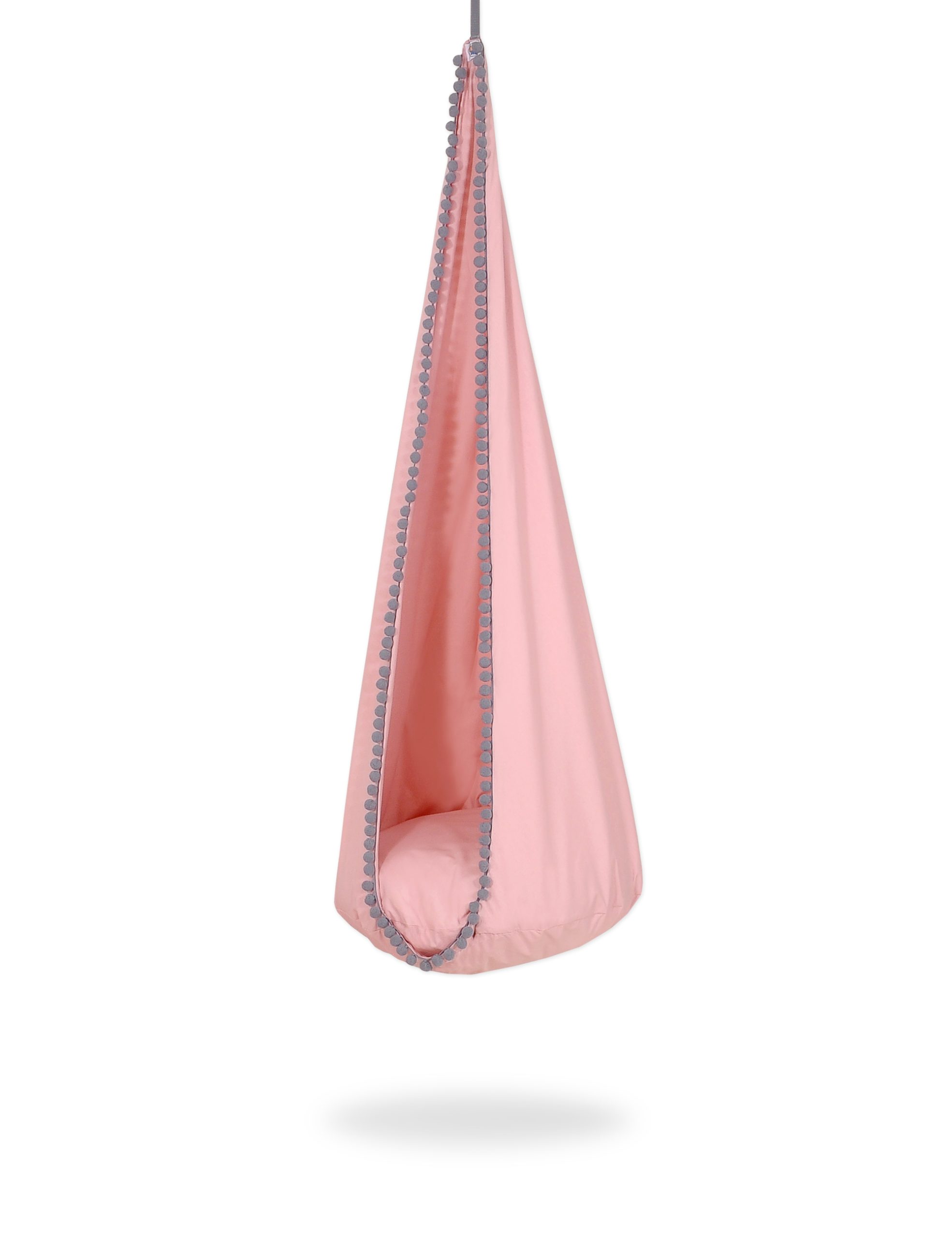 The swing has been made of high quality cotton. Two layers of fabric increase the stability and safety of the cocoon, strong straps strengthen the swing and careful handwork guarantees the highest quality. Cocoon decorated with decorative pompoms. Comes with a comfortable double sided cushion, removable for washing. Outer cover fastened with a covered zipper, easy to take off.