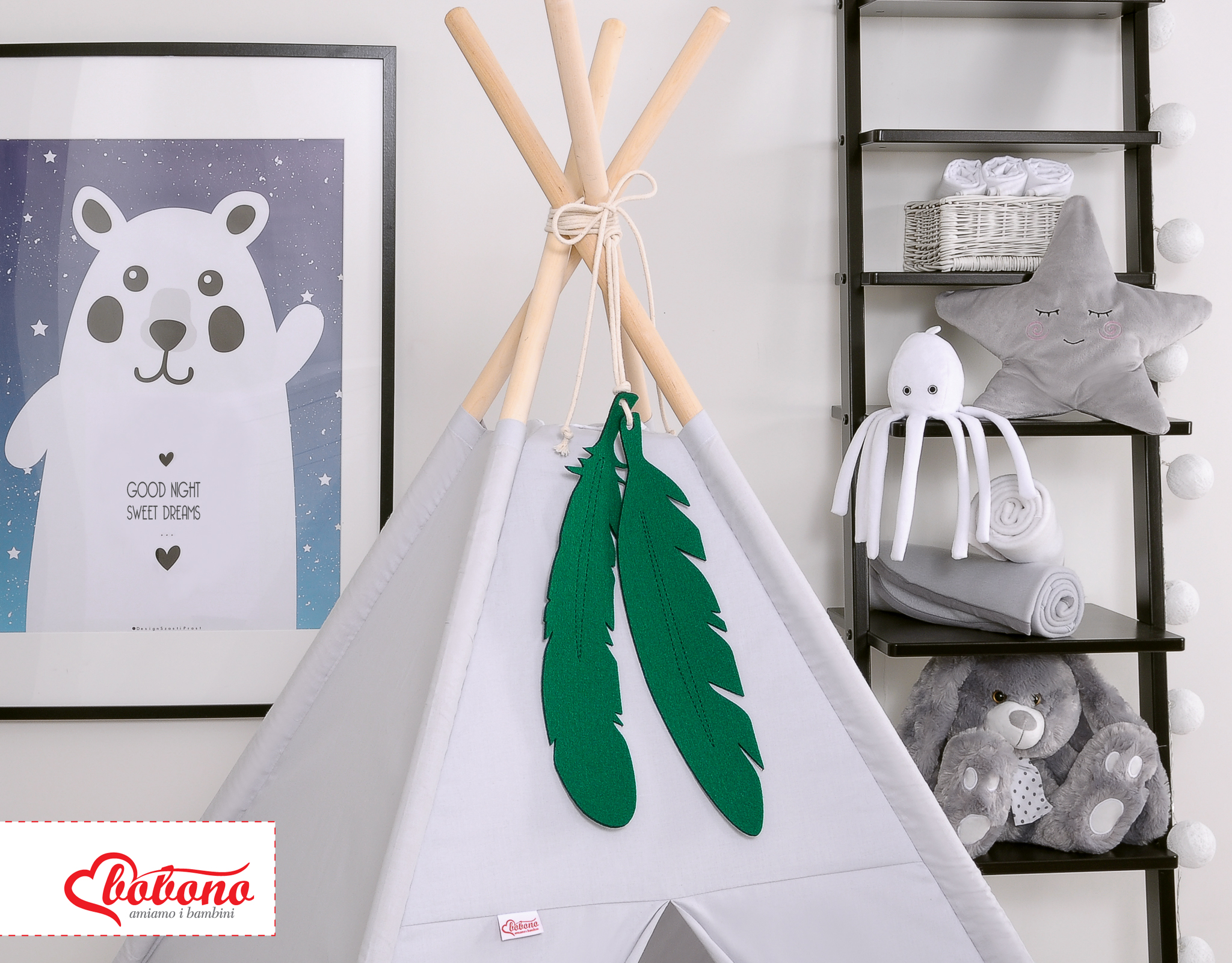 Teepee tent for kids +play mat + decorative feathers – White dots on grey