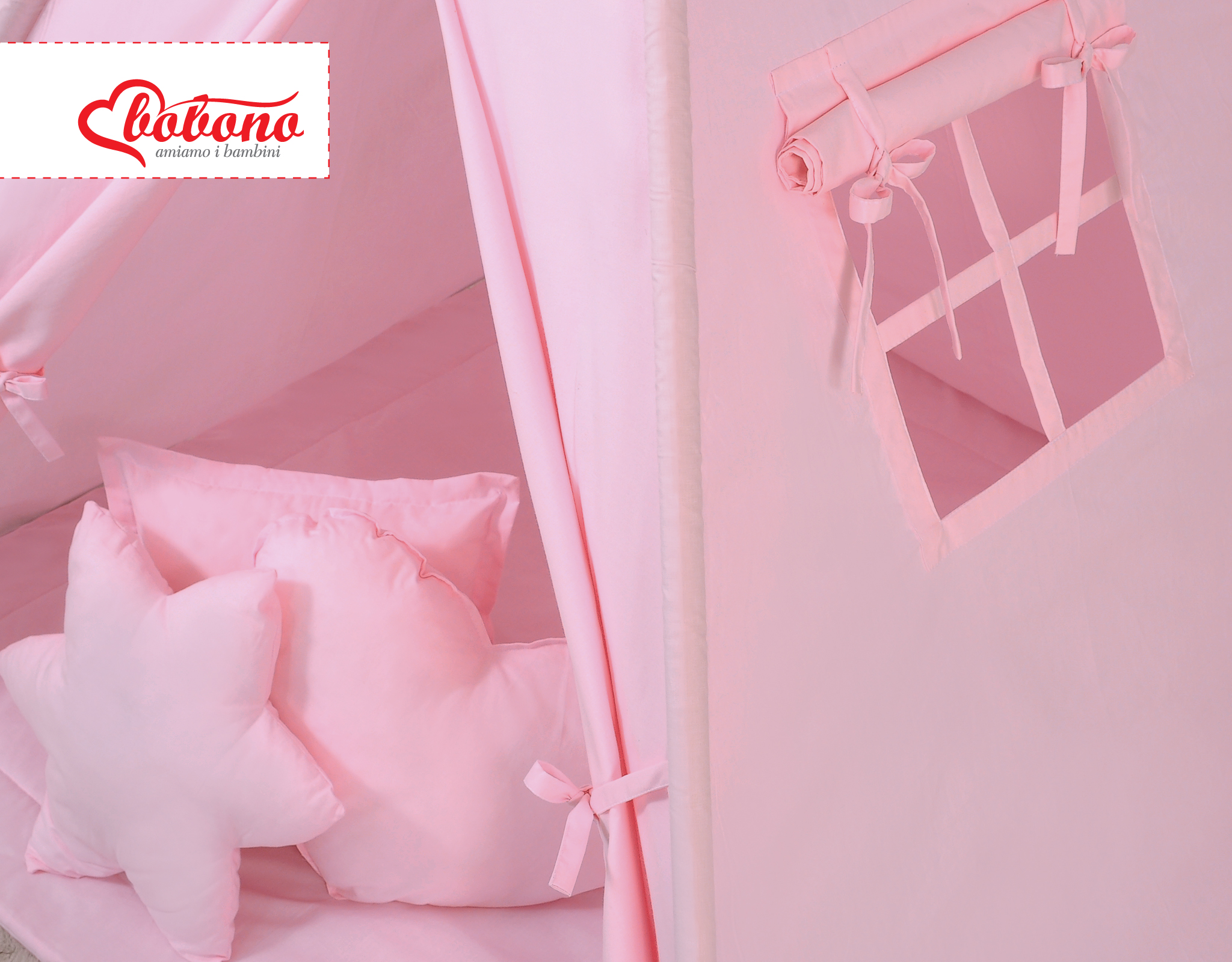 Soft, fluffy pillows, matching the tent color. Each pillow in a different original, decorative form. Cushions are bicoloured – each side made of a different material. Also perfect as a colorful decoration for kids room.