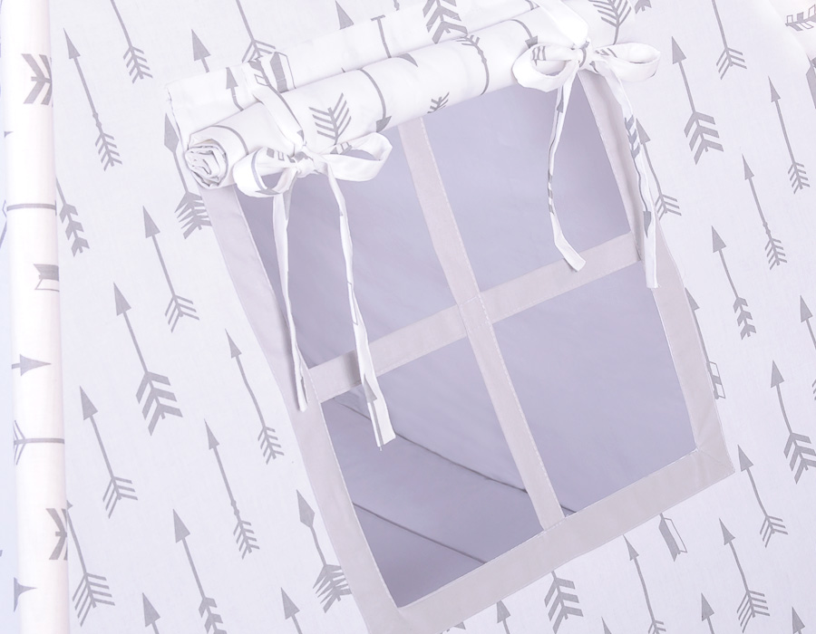 Thanks to its special design, the tent folds up easily and is very lightweight, making it easy to carry and set up anywhere. It has been made with attention to every detail so that it is safe and stable during play. The poles that build the tepee have been hidden in special tunnels – they are tied together at the top with a fastening string and finished with a special plastic cap at the bottom. The total height to which the tent unfolds is 150cm. The diameter of the lower part of the Tipi is approx. 130cm. The tent cover is removable and machine washable. There is a window with a curtain in the side wall of the tent, and the entrance to the tent has special ties that can be tied so that the child has a free passage into the tent and out. Once the curtains at the entrance have been lowered, the tent can provide an ideal hiding place during playtime.