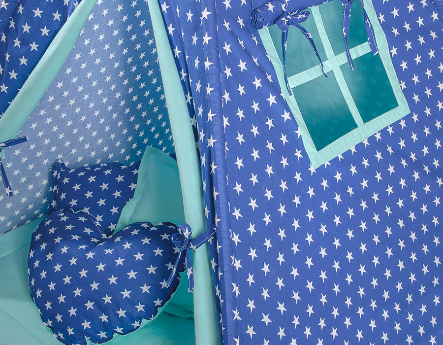 Teepee tent for kids + decorative feathers – navy blue stars